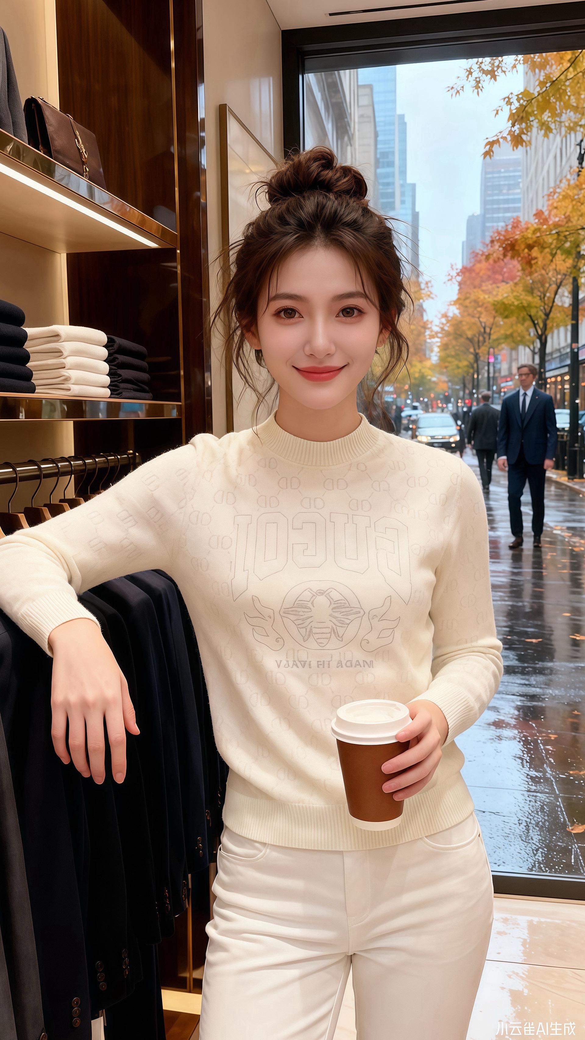 后来她靠在衣架旁等他结账,皓明忽然从身后拢住她的肩:“其实不用什么logo,你穿基础款,都比店里所有陈列都好看。”