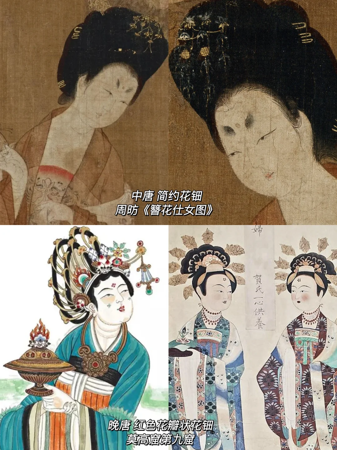 🎀而到了中唐以后,简约款花钿成为趋势,在周昉的《簪花仕女图》中,我们便能窥得一二。