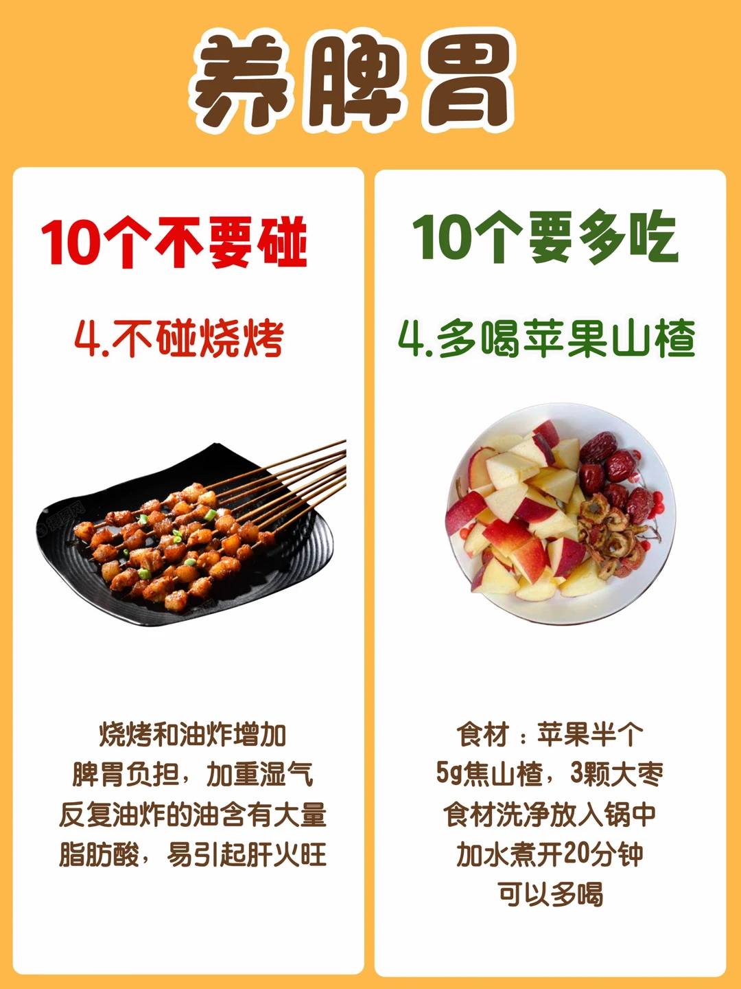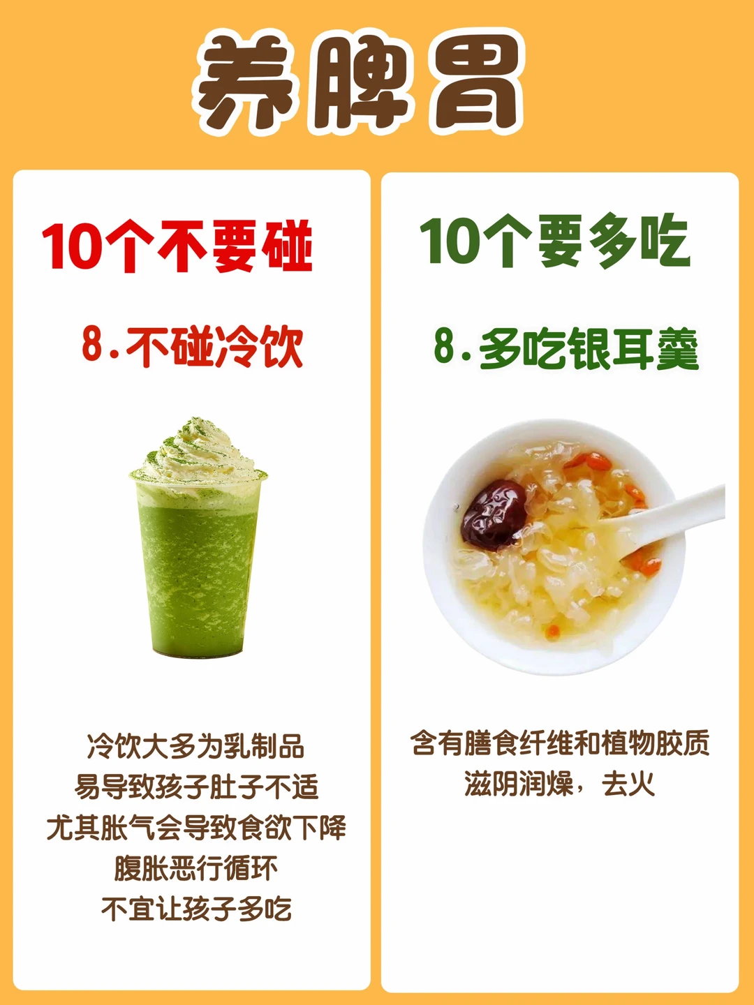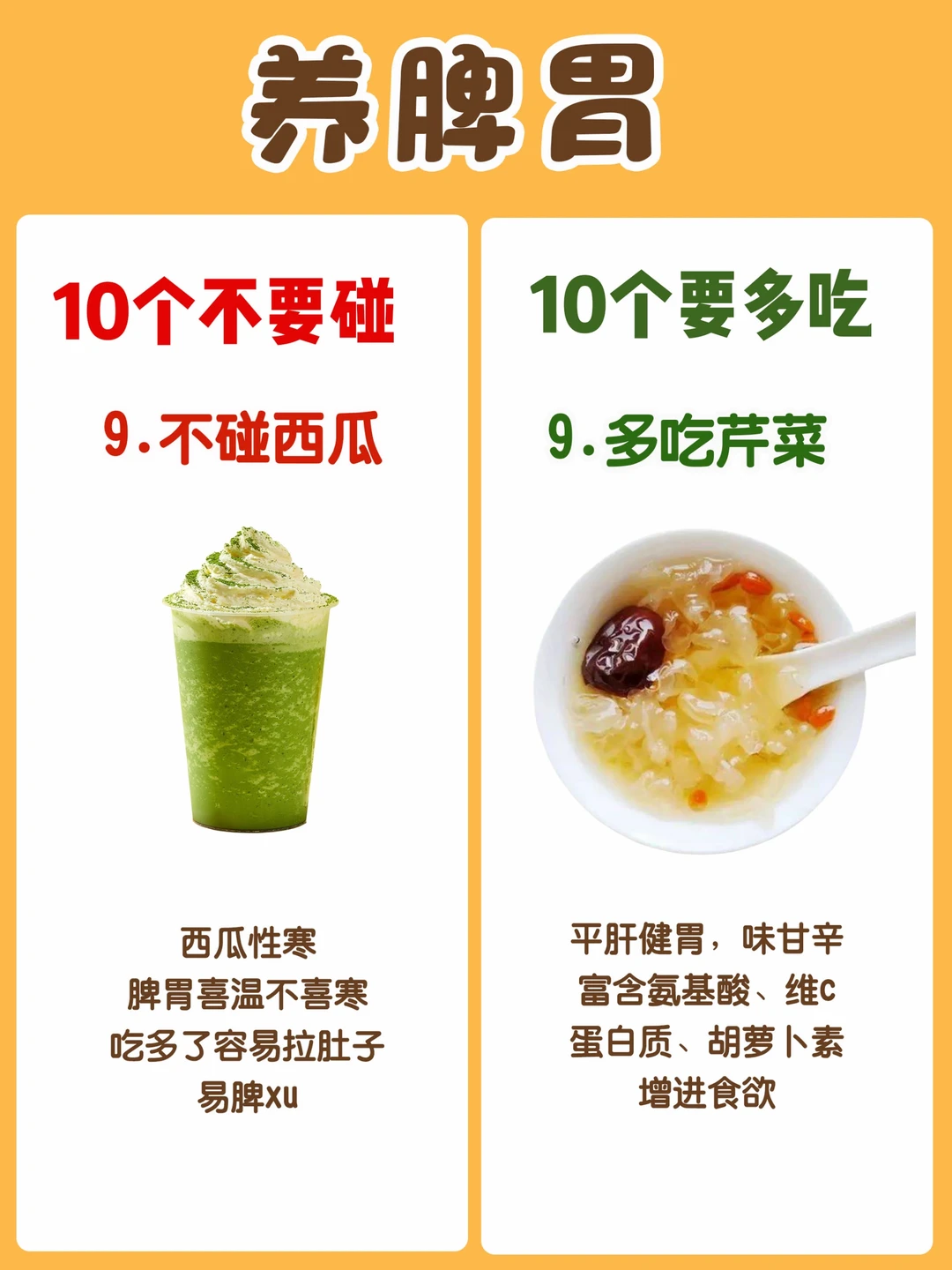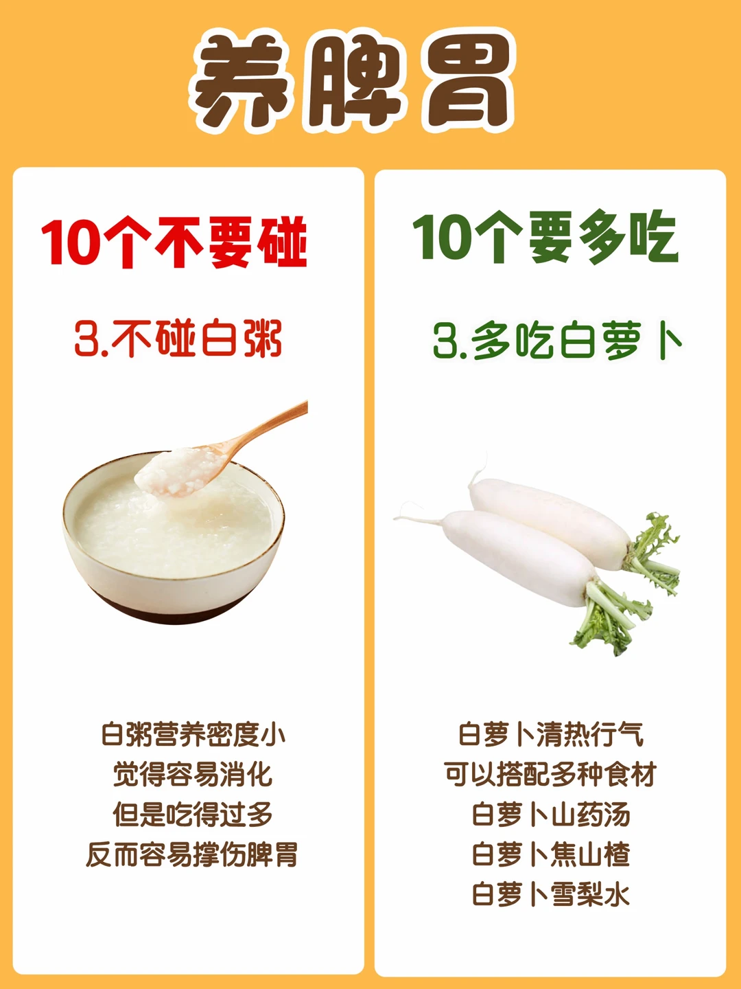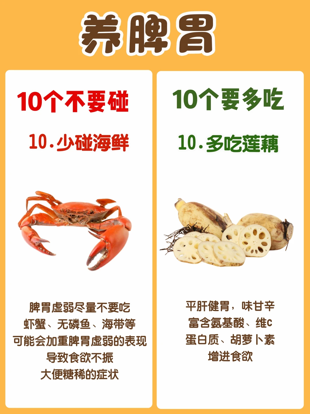 今天整理了一份养脾胃【10多吃10不碰】食材10多吃: