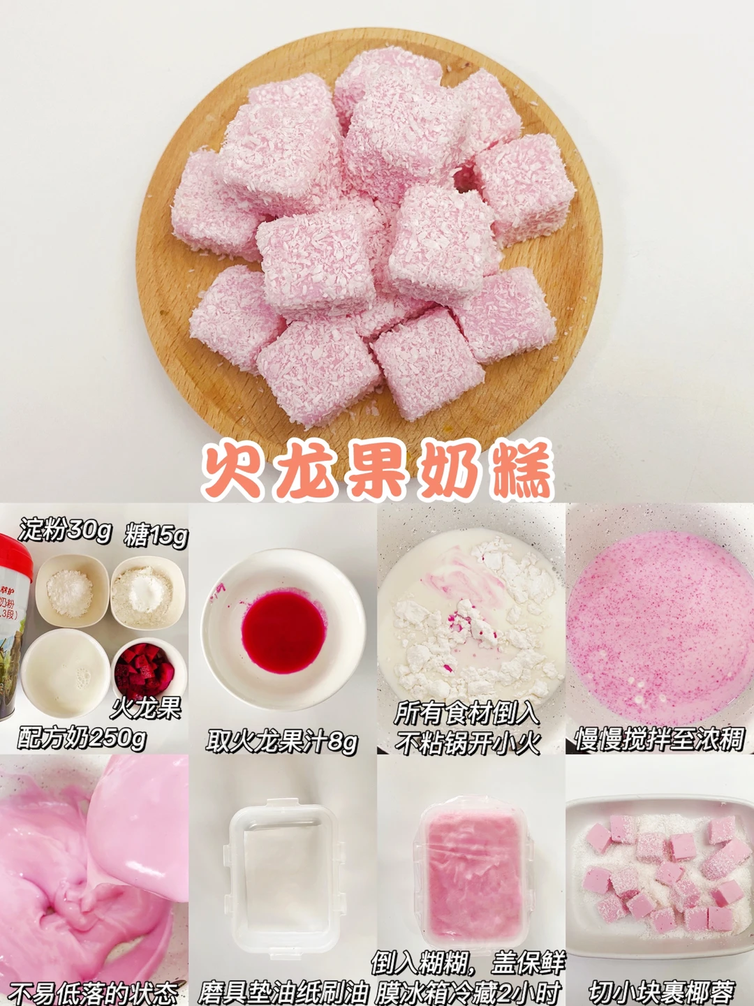 配方奶250g、糖15g、玉米淀粉30g、火龙果汁8g