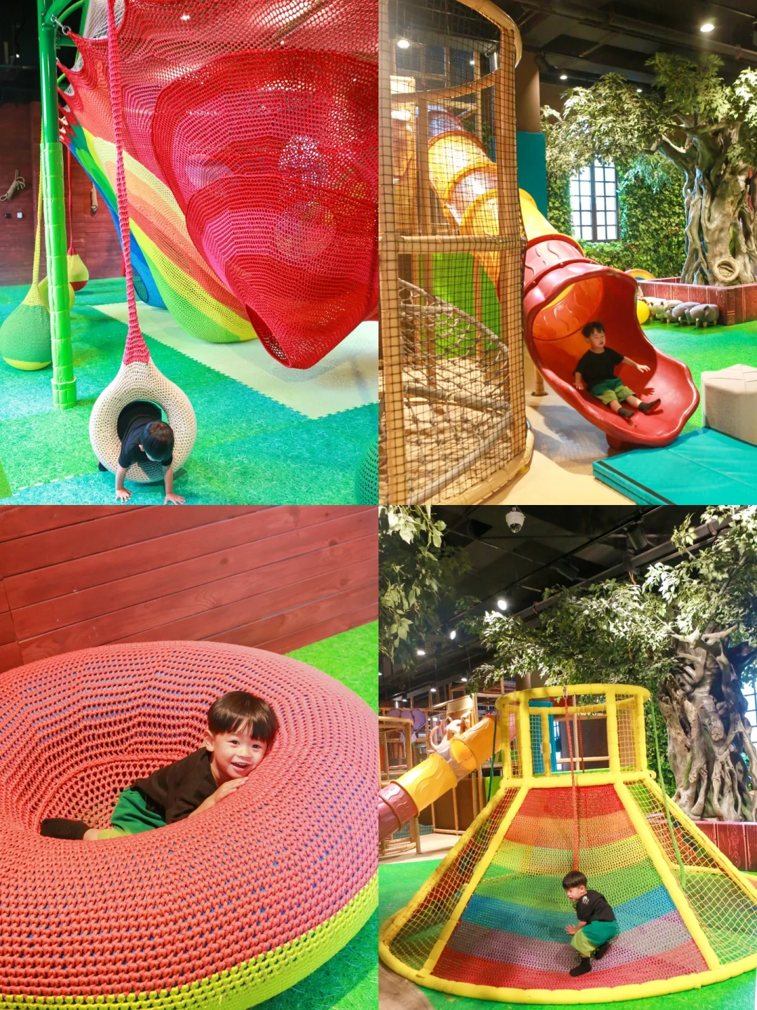去年带娃走过武汉好玩地100站‼️今年继续 第150站:地铁抵达国外小镇 以前总以为这里很远,才知道地铁可以直达🚇 这次发现了一个彩虹🌈森林游乐场 小肥羊很喜欢!!面积大可玩的也很多 🎠游玩攻略: 🚗自驾:停车免费 1️⃣游乐场是丛林动物主题(二楼) ✅蹦床、攀岩🧗、海洋球、旋转滑滑梯 ✅彩虹编织攀爬区还是头一次见,还蛮有趣的,拍照也很好看 ✅记得带上防滑袜‼️ ✅里面有四五个体验VR的区域,都是免费🆓 2️⃣吃饭的餐厅,也都是适合小朋友的,几乎每一家都有儿童套餐🍴 3️⃣小朋友的鞋子、衣服也都很便宜 - 在这里买东西真的是种享受🌈娃也玩开心了 -