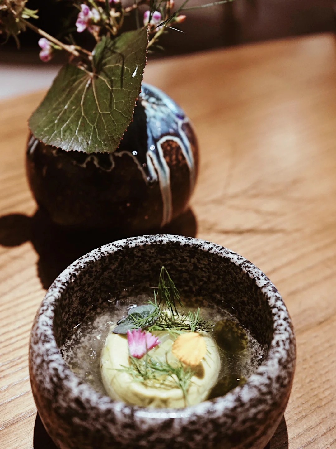 Roganic和伦敦的模式一样,有实验厨房Aulis。Aulis好像就是料理的实验室🧪,而这些厨师👩🍳便是科学家,用先进前卫的器具和技术来研究创新菜式。Roganic外面有一个粉色的橱窗,摆列着一盆盆如盆栽般的蔬菜,很新奇。