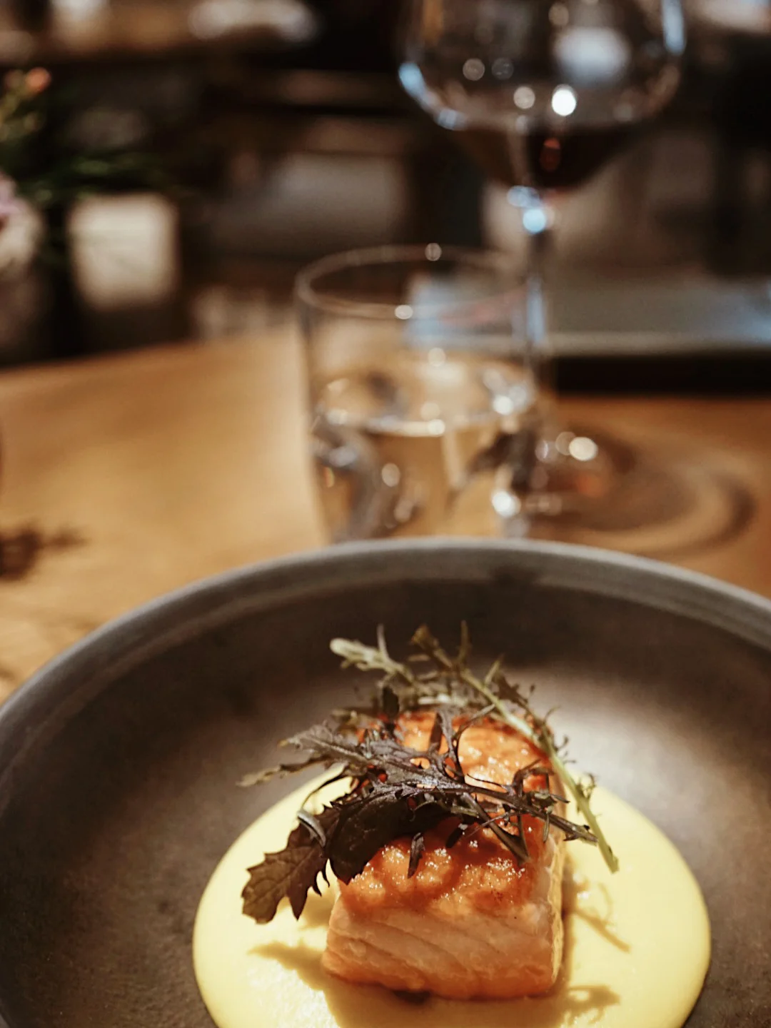 三文鱼和玉米浓汁搭配很有惊喜。