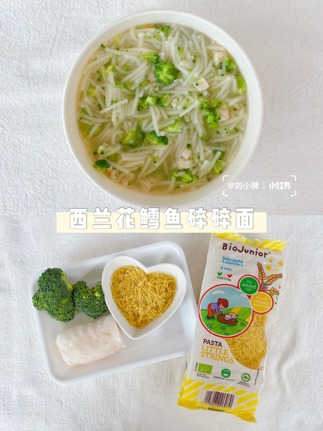 2⃣️锅中加水烧开,加入碎碎面和西兰花鳕鱼碎,全部煮熟即可。
