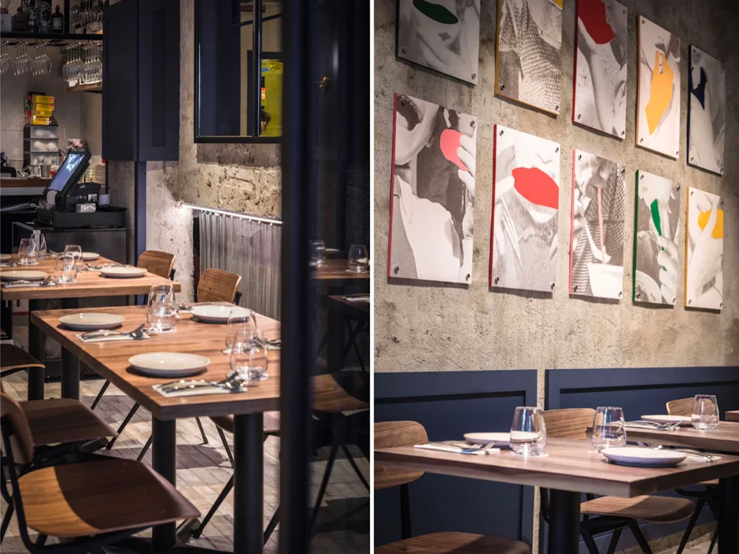 🌞🌛🌟这家店逛街的时候发现的,便一直都在我的探店list 里。喜欢宝蓝色的外墙,法式Bistro的风格,木凳边上便是很好的打卡位子。里面外露的混凝土墙壁上装饰着奇特的艺术品,开放式的厨房,简洁的桌椅,法餐的餐厅有了一种温暖亲切的感觉。