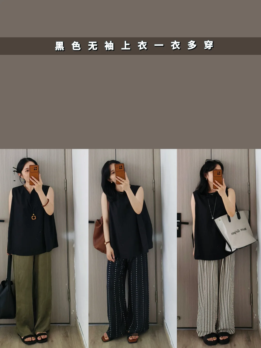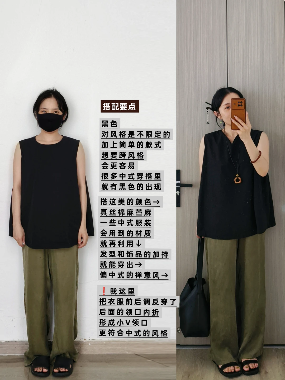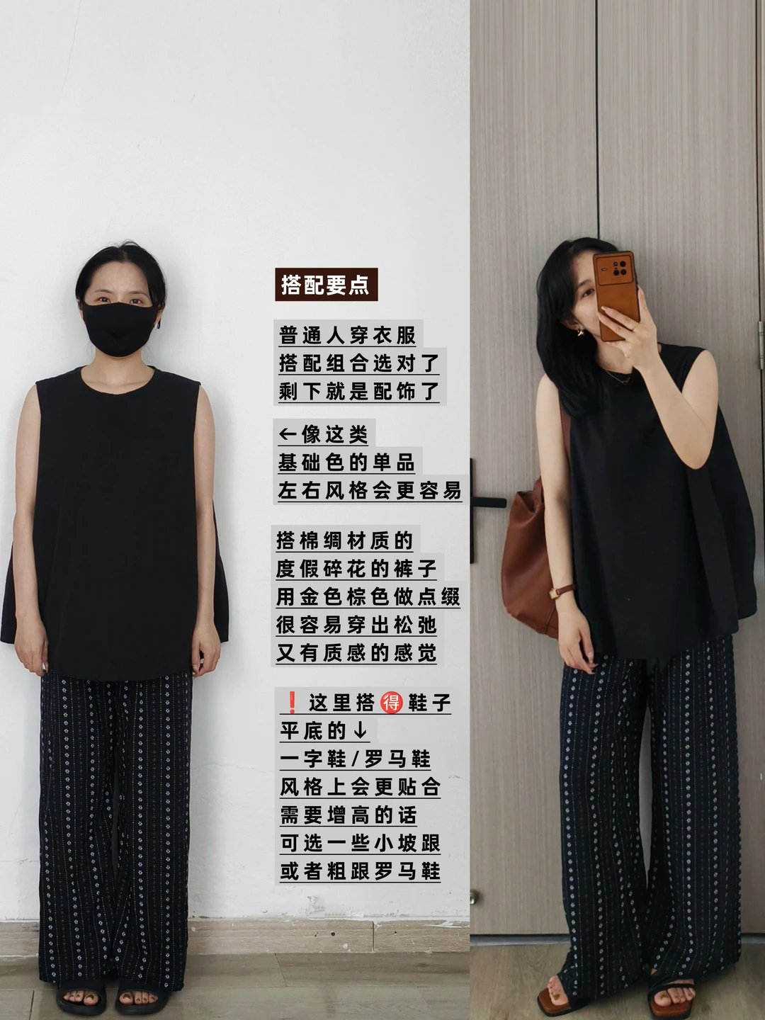 黑色无袖上衣搭配阔腿裤的搭配来啦~