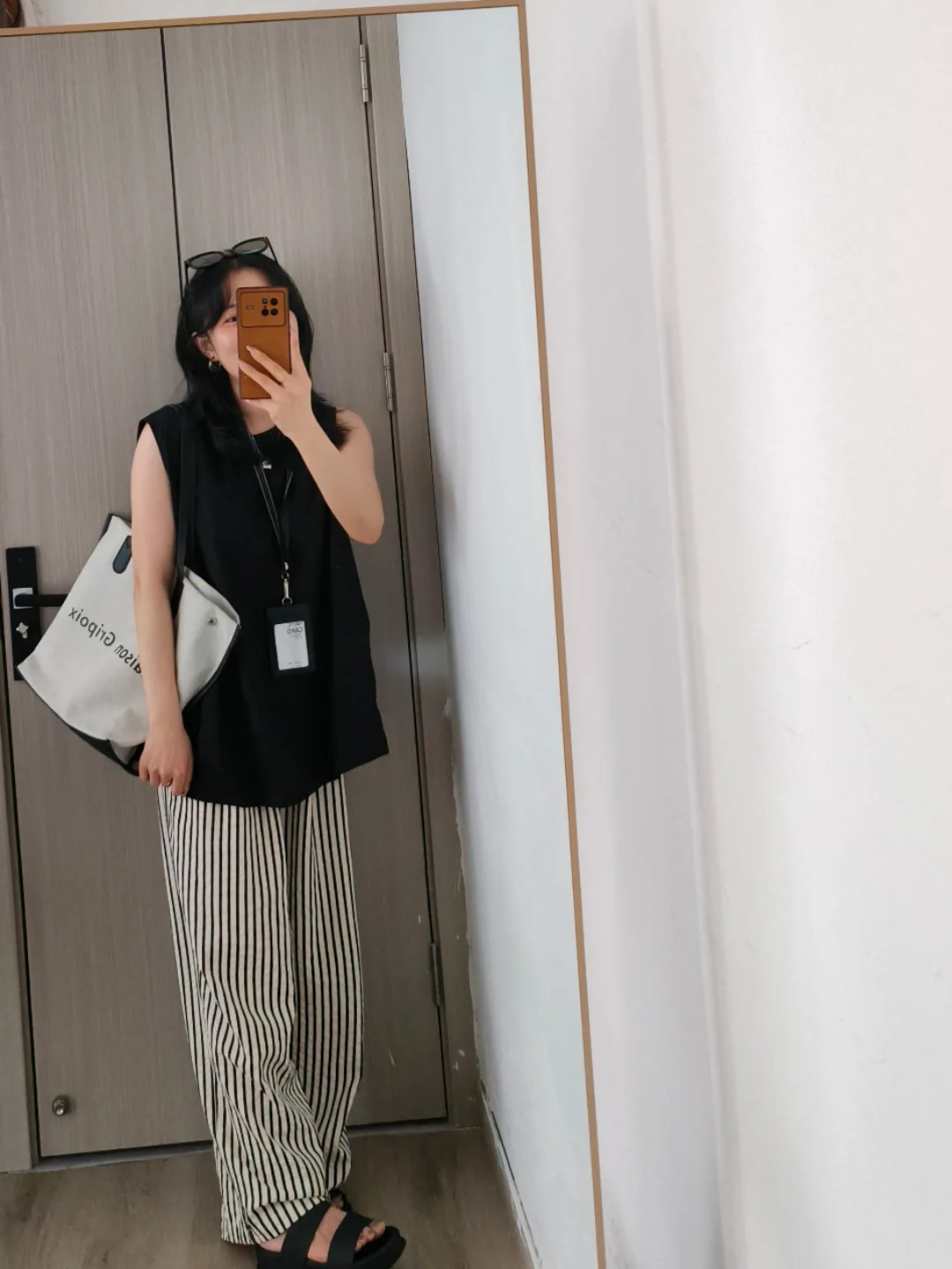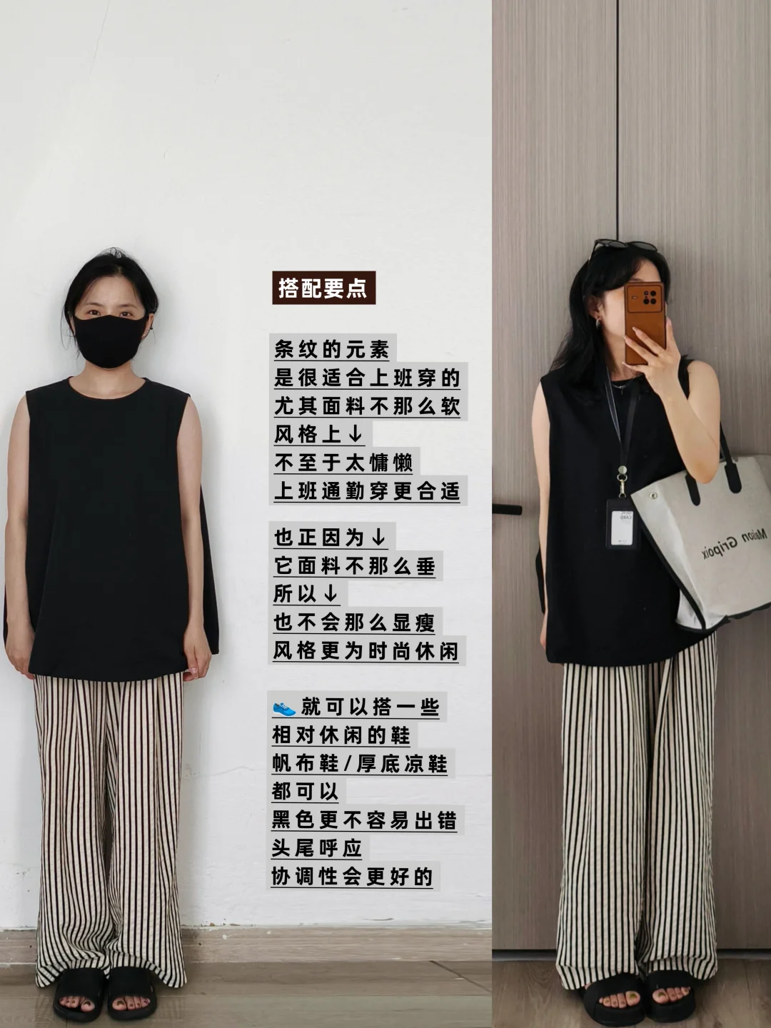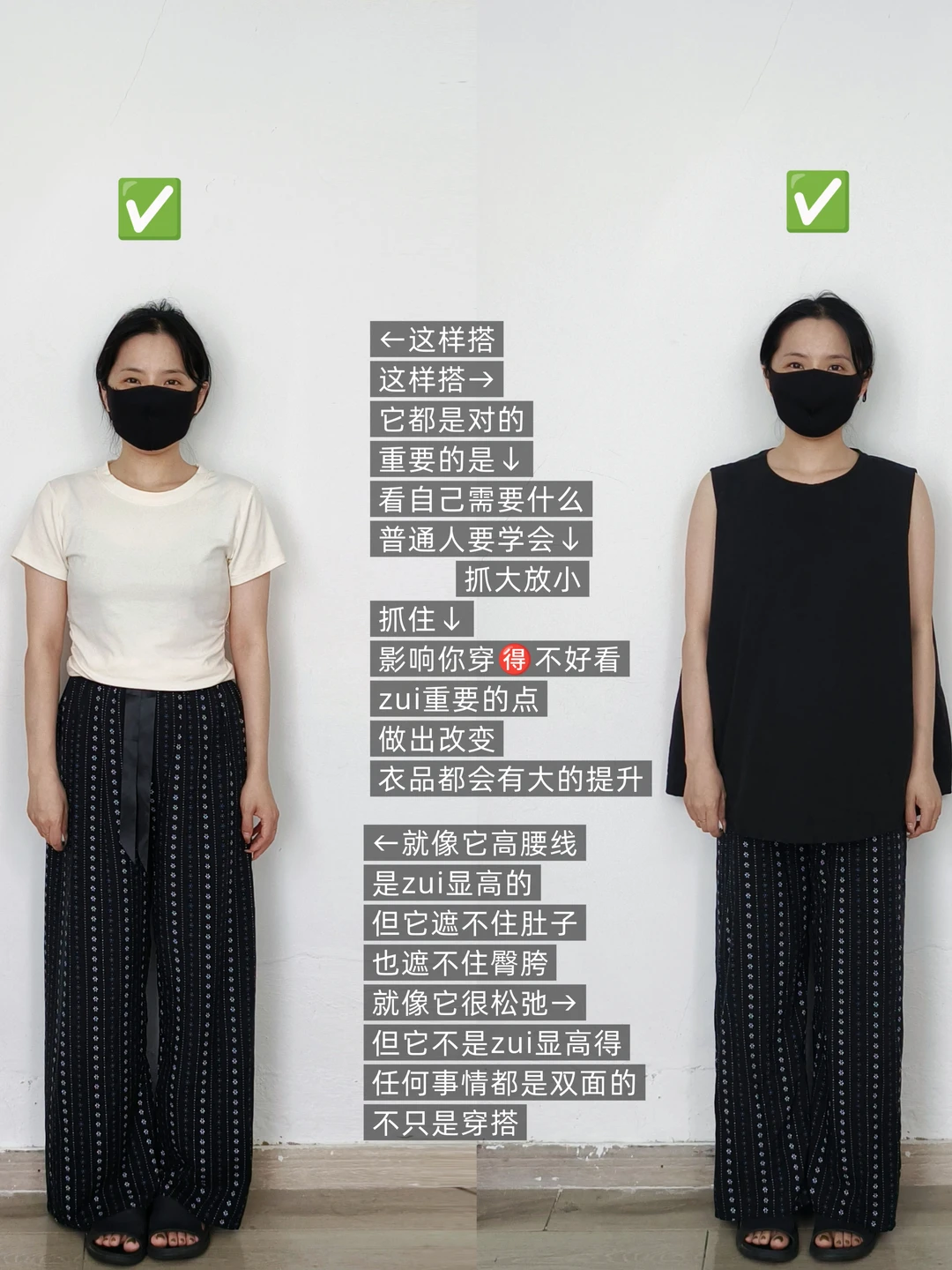 黑色无袖上衣搭配阔腿裤的搭配来啦~