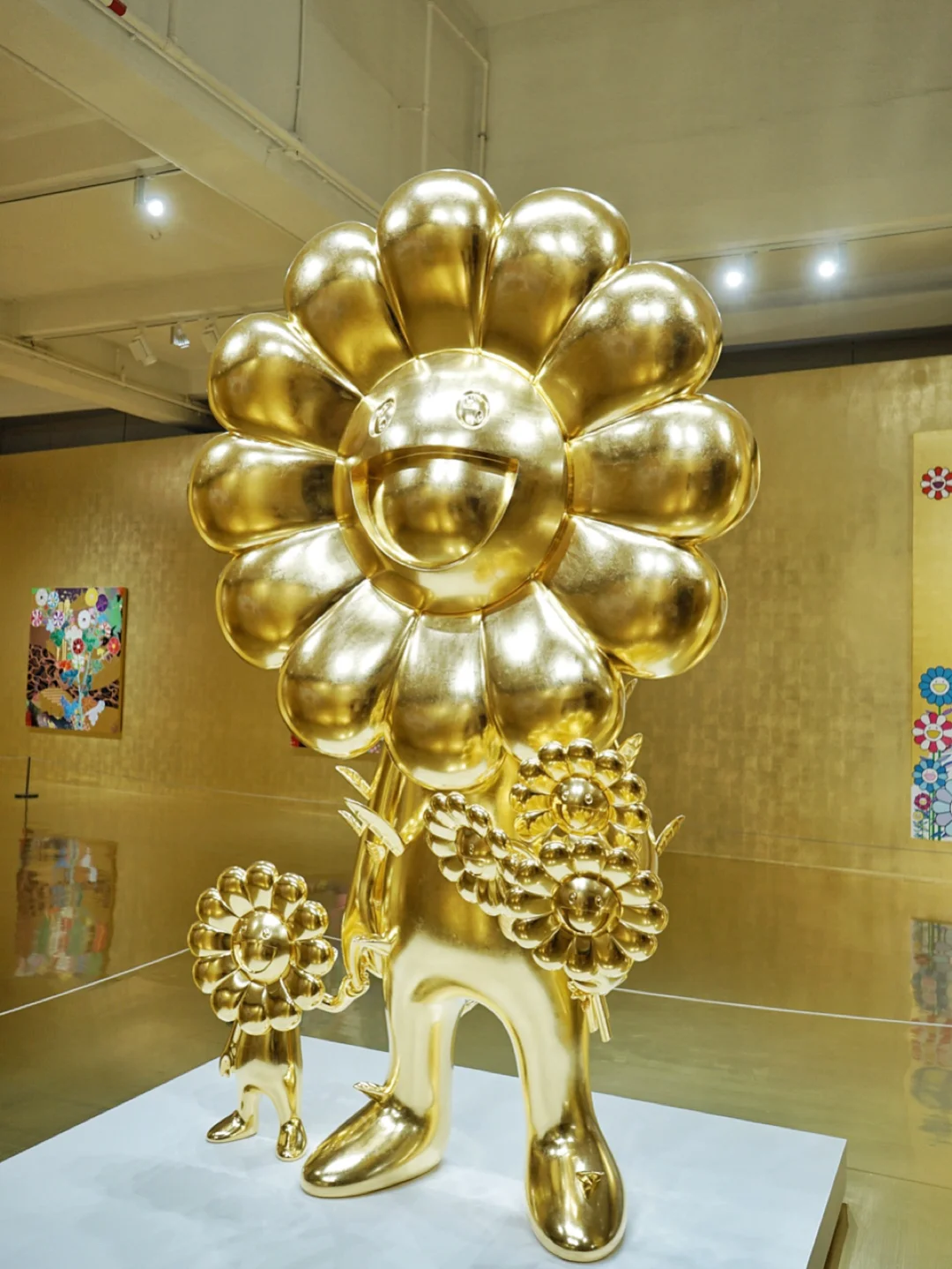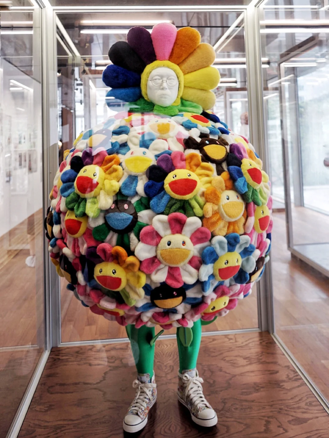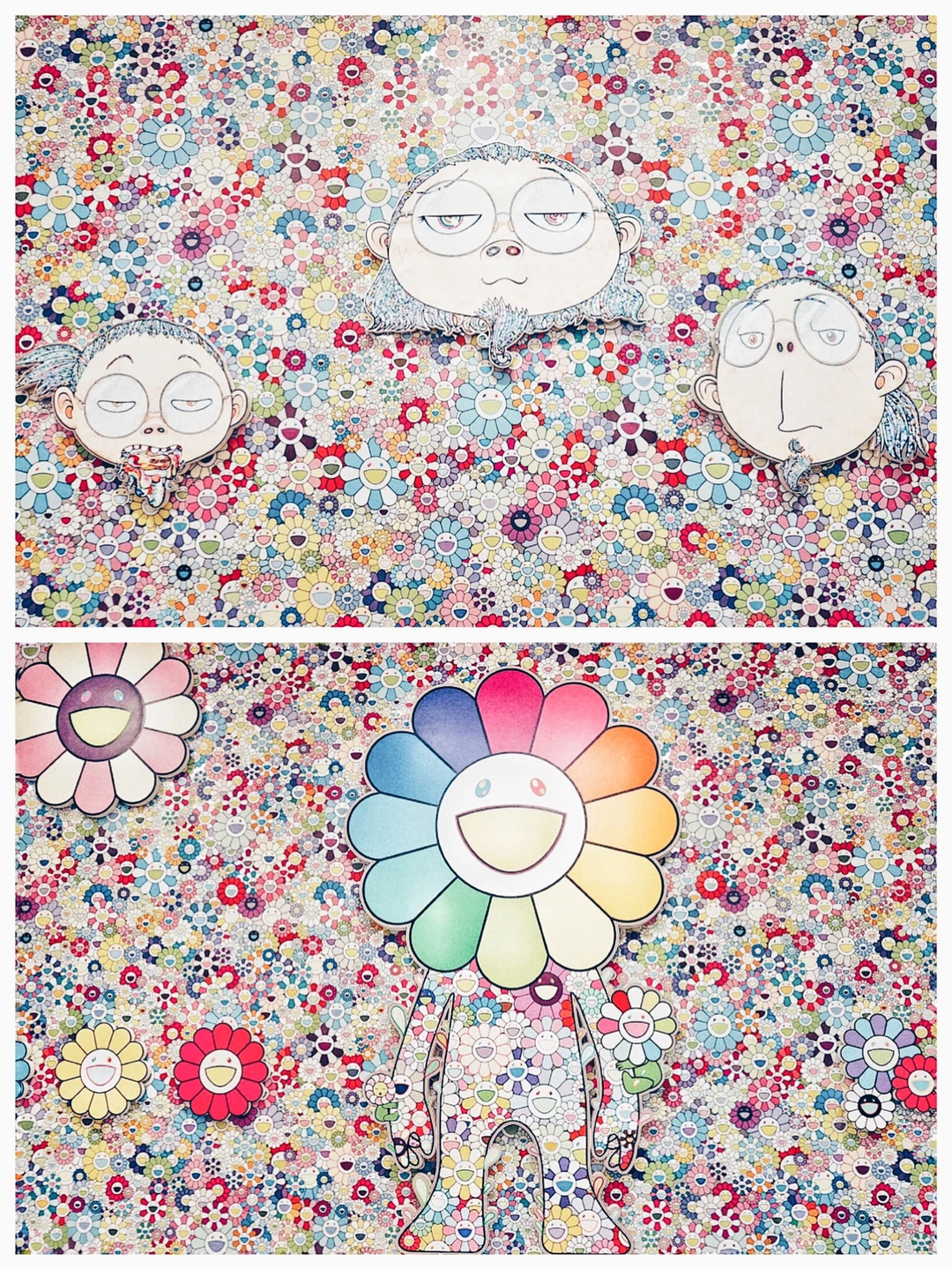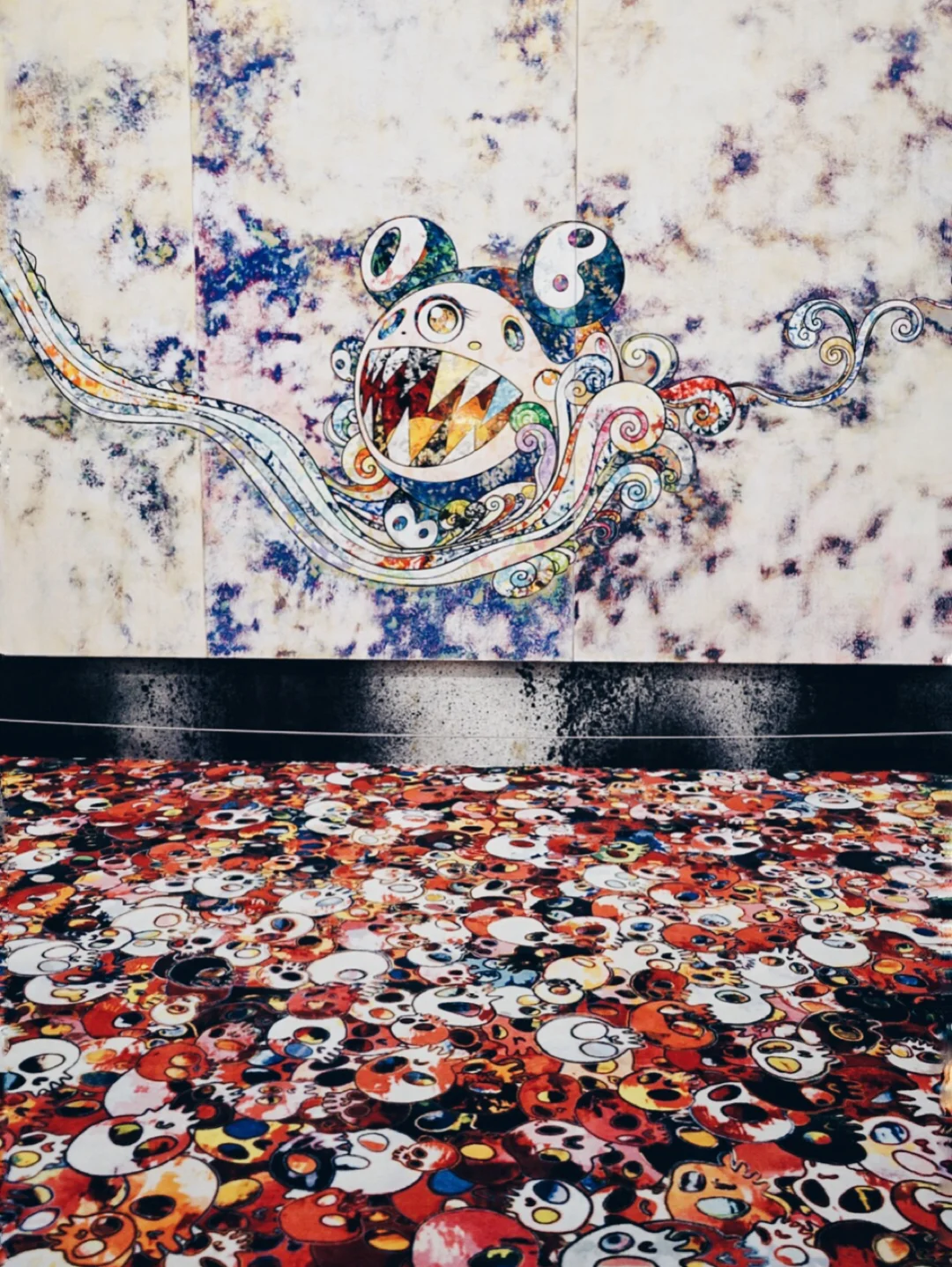 四面墙,地毯上满目的太阳花。村上隆“超扁平”概念,不仅指日本艺术中画面的透视平面,更引申为拒绝将高雅艺术、低级艺术、社会本身划分等级。