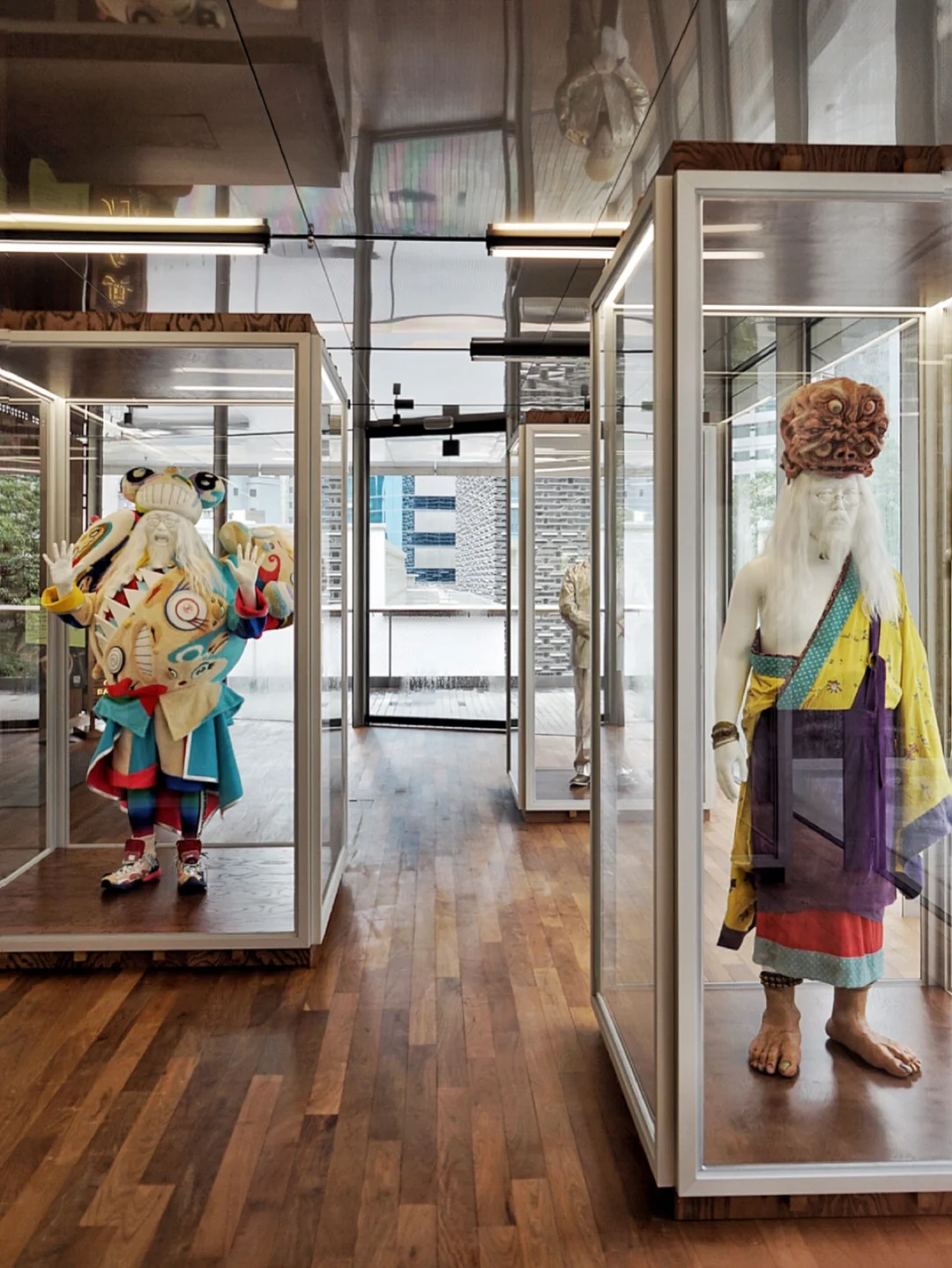一进三楼展厅,便可看见村上隆十年创作的大型金箔雕塑《宇宙初生的啼声》,这是第一次完整亮相。作品呈现宇宙的雄伟庄严,却仿佛难以承受自身重量,显得慌乱不安,整个形态溃不成行。地板布满了骷髅☠️,内心竟一片荒凉,人终有一死,财富欲望皆为虚幻。