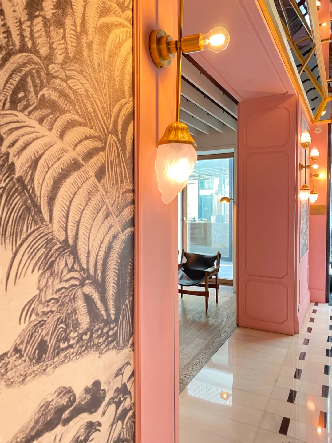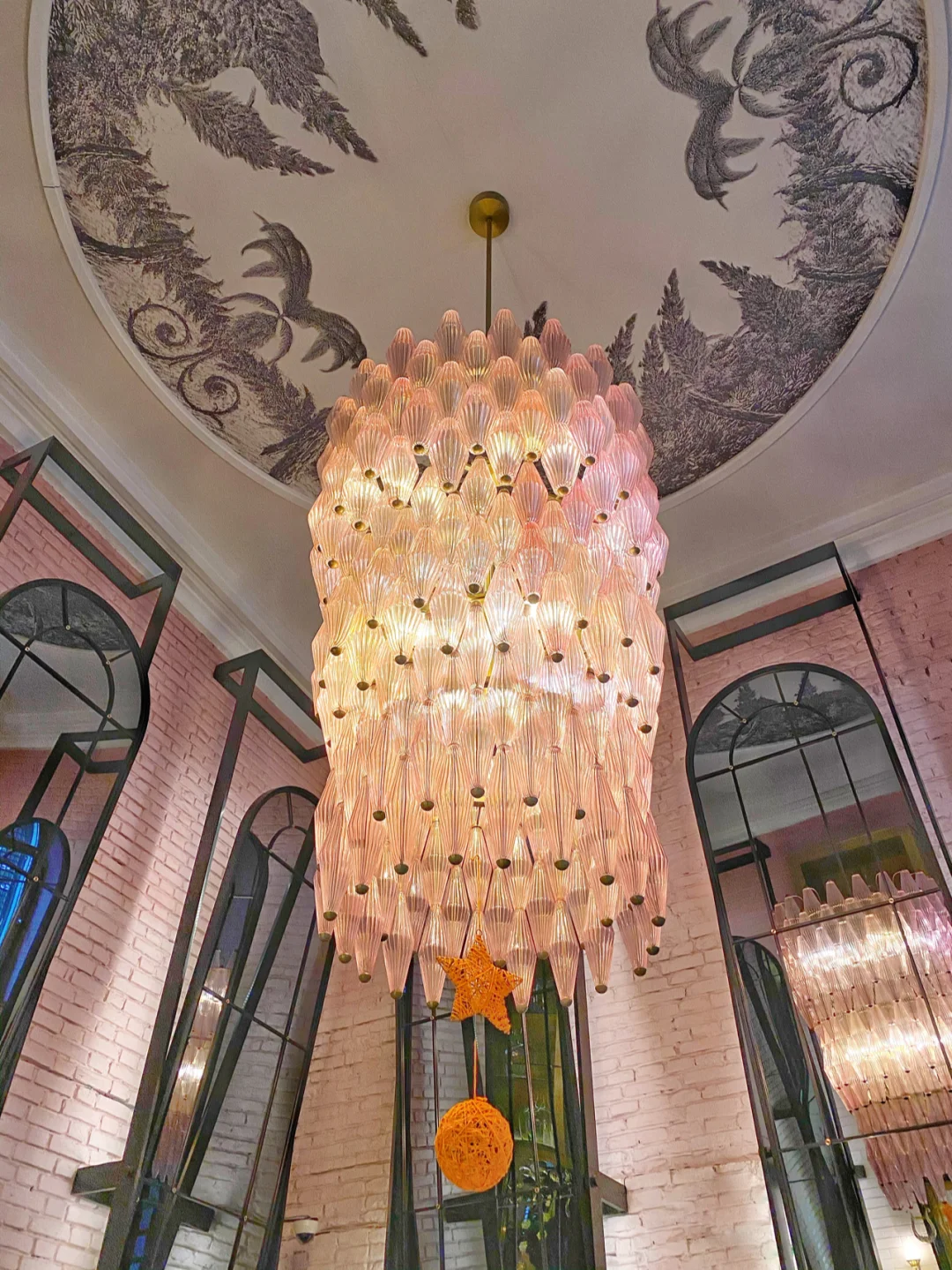 酒店的走廊,吊灯,粉色基调,却不至于过嫩过油腻,拍照很好看,尤其是中午灯光,手机拍出来就很美。这一组照片就是iPhone 11 Pro所拍。