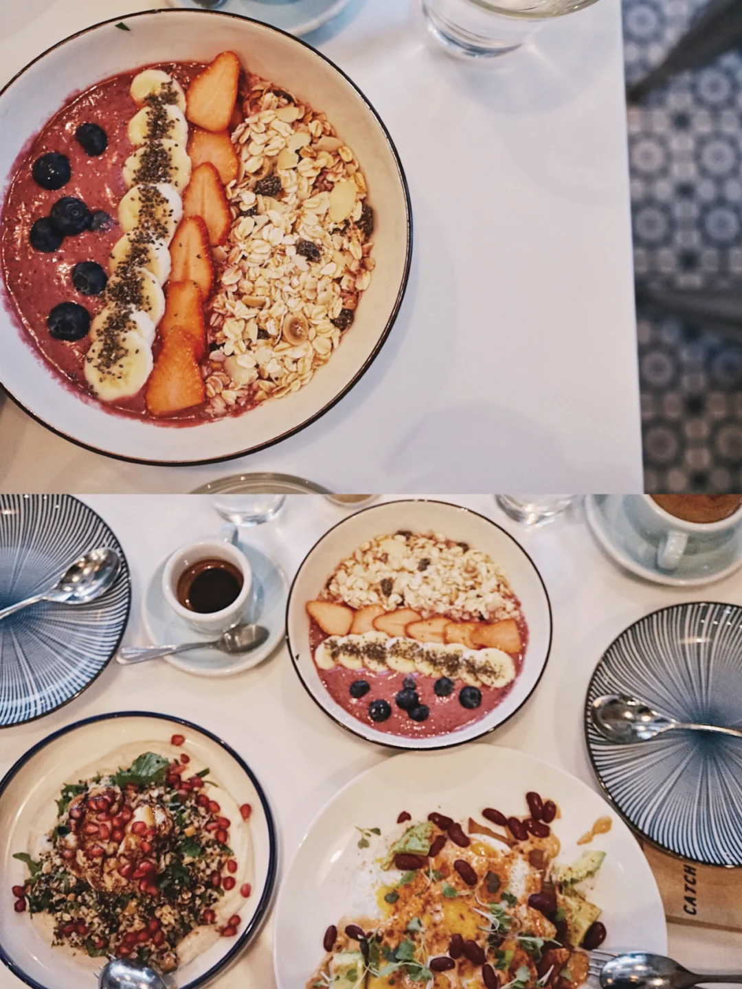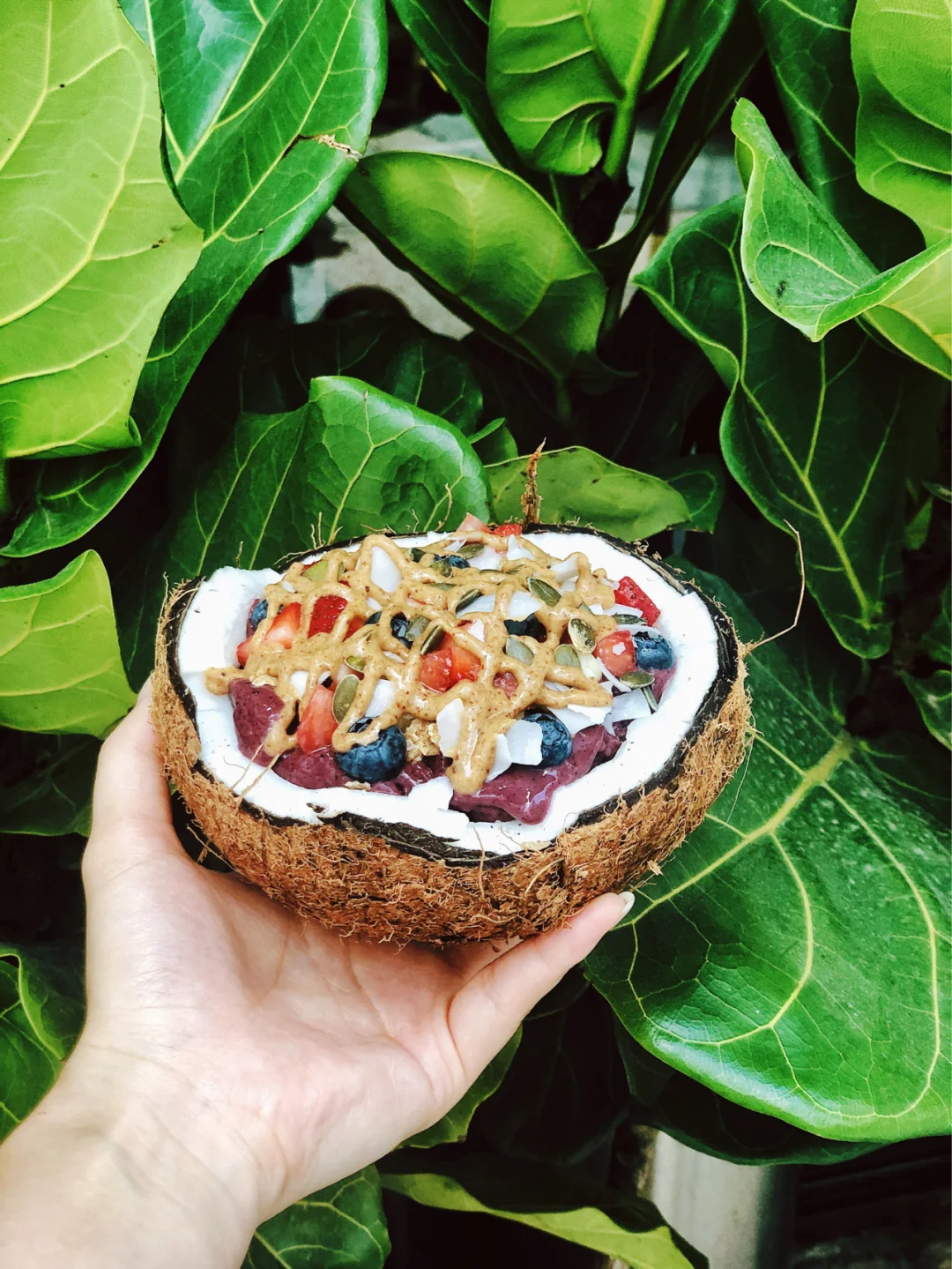 最instagrammable 的就是Coco bowl, 用椰子碗装巴西莓、草莓、蓝莓、香蕉、椰子片和南瓜籽,还可以加上一些topping, 非常喜欢。另外,还有fire bowl,火龙果做底,也是我常吃的fruit bowl。