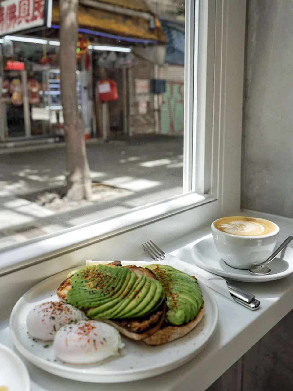☕️☕️NOC的咖啡一贯出色,使用意大利 La Marzocco Linea PB意式咖啡机,可以选择自家烘培的咖啡豆,一款比较浓郁,一款则果味比较重。其实,喜欢NOC还因为它家的牛油果土司🍞实在是我的心中所爱。加上水波蛋🥚,能点亮一天的心情😄❤️