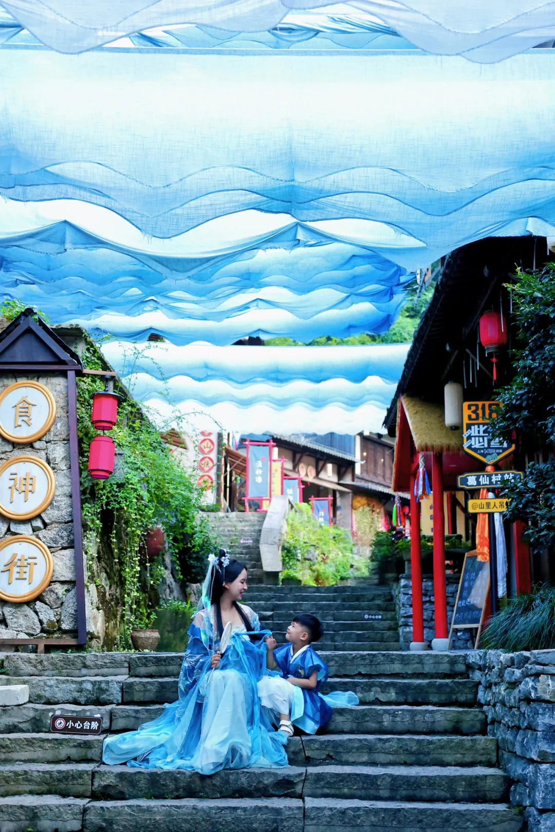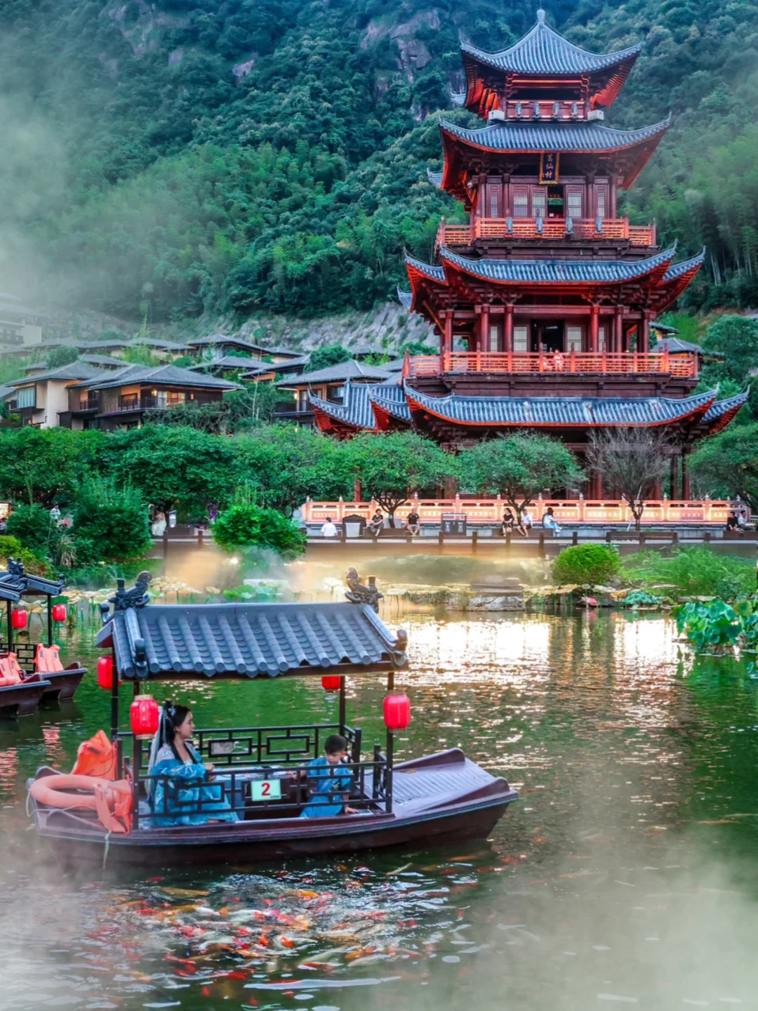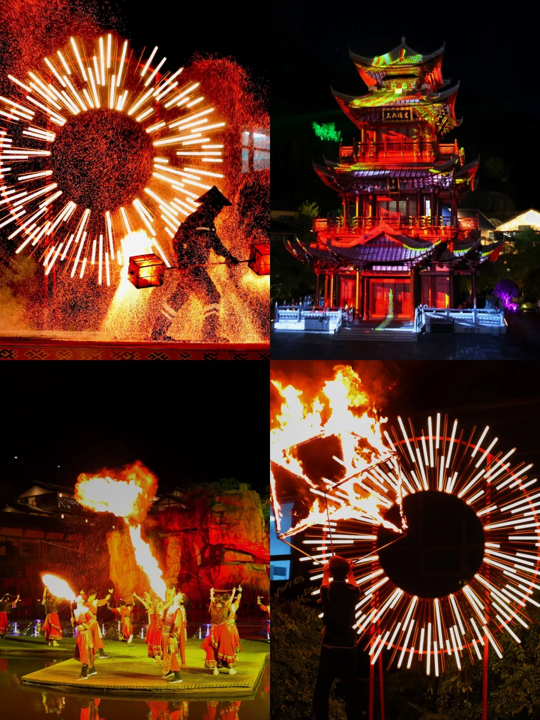 去年走过好玩地100站‼️今年继续 第250站:葛仙村仙侠游⛰️ 江西真的是一个宝藏旅游地📍 碧水仙山真的令人心驰神往 这次带着一家老小来到这里圆了我的仙侠梦‼️ 不得不说这里真的白天☀️晚上🌙都很精彩 来这里住进群山环绕的古镇仙山🏔️ 过两天避世生活吧‼️ 两天一夜,夜游古镇+仙山祈福攻略给到大家👇 —————————🍵 🚄交通: 高铁🚄到上饶站 (可乘坐大巴班车30💰/人,或者顺风车到达) 🏡住宿: 入住景区内民宿—竹影山居🎍(图17) (房间门口有一个小院子,小朋友可以在院子里玩) —————————📷 🛶两天游玩攻略: ☀️Day1:(山下游玩) 下午到达,在景区安排好服化道就可以美美的游玩啦 1️⃣体验游船喂鱼(在众妙阁旁边的湖)可以把船开到湖中心吸引锦鲤,小朋友觉得很好玩大人还可以游船拍美照📷 2️⃣然后逛一逛众妙阁附近的街道,体验古镇风情,吃点当地小吃,随手一拍就是美景。 3️⃣到晚上丰富的表演让人目不暇接🌙,老人小朋友都觉得相当震撼‼️分享几个值得观看的项目 ✔️火虎(图7):震撼的视觉盛宴,古老的民问绝技 ✔️火裙舞:燃烧的裙摆在星空下格外的耀眼‼️给舞蹈增添了别样的色彩 ✔️非遗火壶(图6):社火又称“社戏”是中国传统庆典节目,熊熊烈火不仅是一场视觉盛宴,更能驱邪避 灾‼️和火壶表演一起的还有火凤凰、火棍、火流星等 🏔️Day2:(山上祈福) 乘坐缆车🚡上葛仙山,俯瞰整个葛仙村的美景!早就听闻葛仙山很灵!一直都很想来 ✔️先去天镜台祈福,看群山环绕烟雾缭绕🌫️ ✔️再爬15分钟的山,老人小朋友都很友好,抵达古老的葛仙观,讨个好彩头同时还能拍美照📷 (山上可以求签,解签也不收费,中午还有🆓斋饭可以吃) —————————🌙 整个旅途轻松愉悦 表演节目丰富多彩,行程满满 希望大家都能拥有愉快的假期生活☀️ -