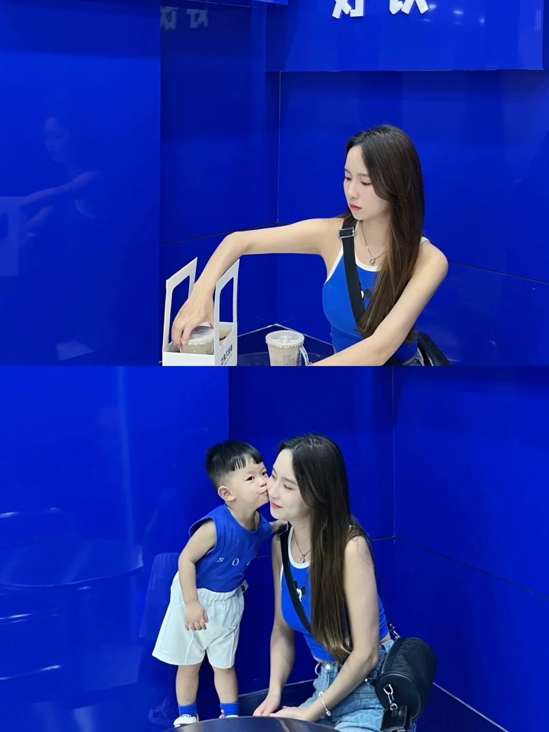 一家人逛街偶然发现一家克莱因蓝咖啡店☕️