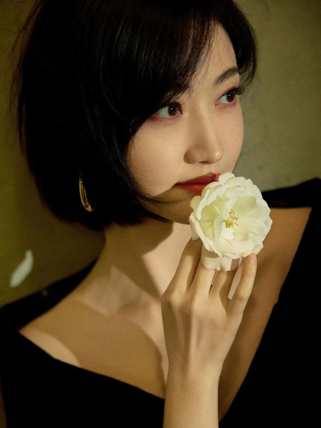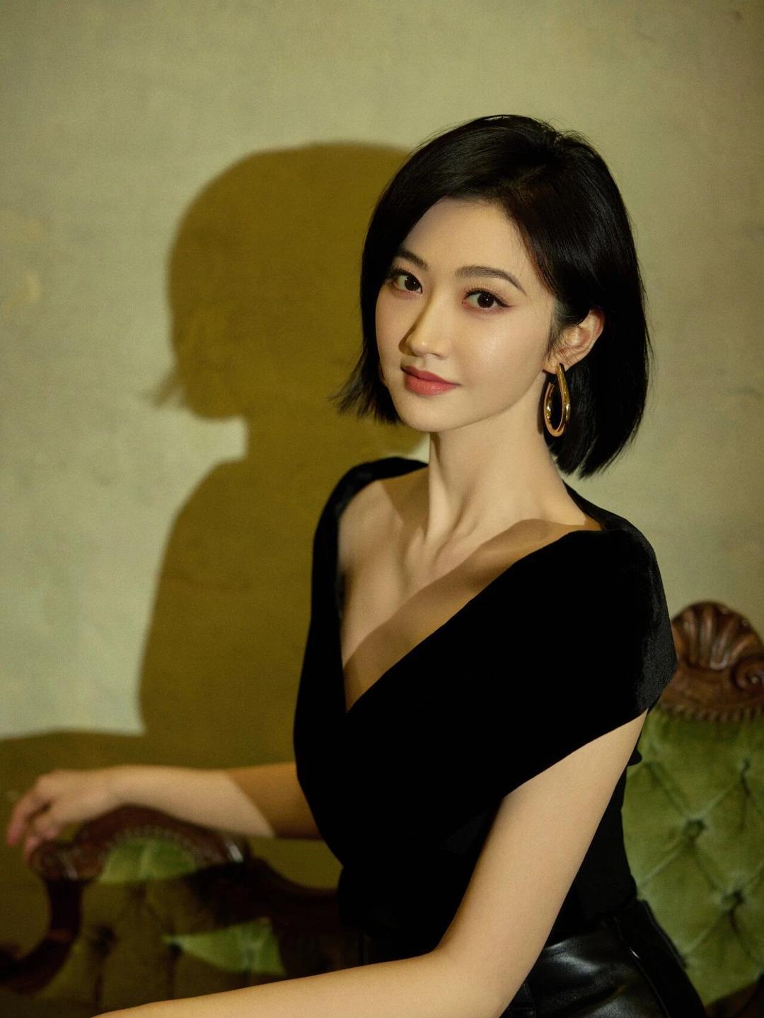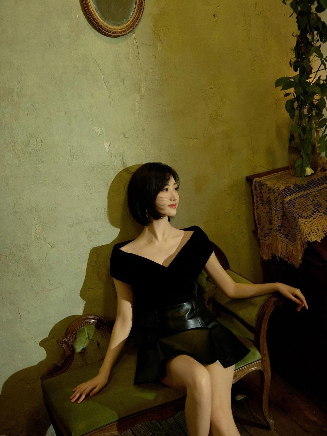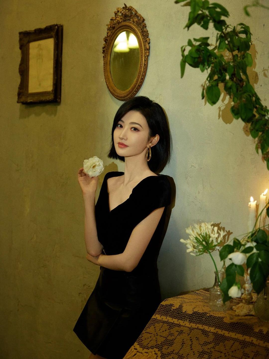 景甜黑色包臀裙氛围感写真真养眼