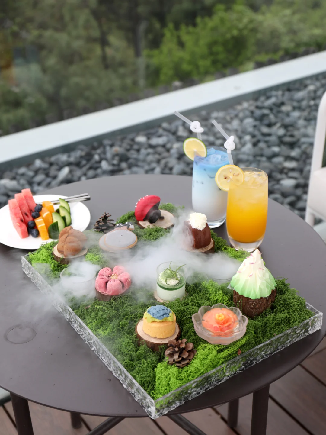 推荐大家尝试一次下午茶,下午茶的造型,就像是林中仙境,和拥有绝佳美景的餐厅露台格外呼应,享受一下颜值和味道并存的下午茶,整个人都感觉松弛了很多