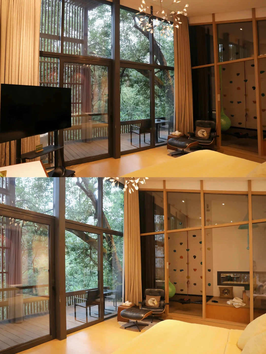 和其他酒店不同,入住溧阳美岕山野温泉度假酒店,就像是在山上隐居,公共区域都在山上,而且每个房间,也都是建造在悬崖上的独立的树屋