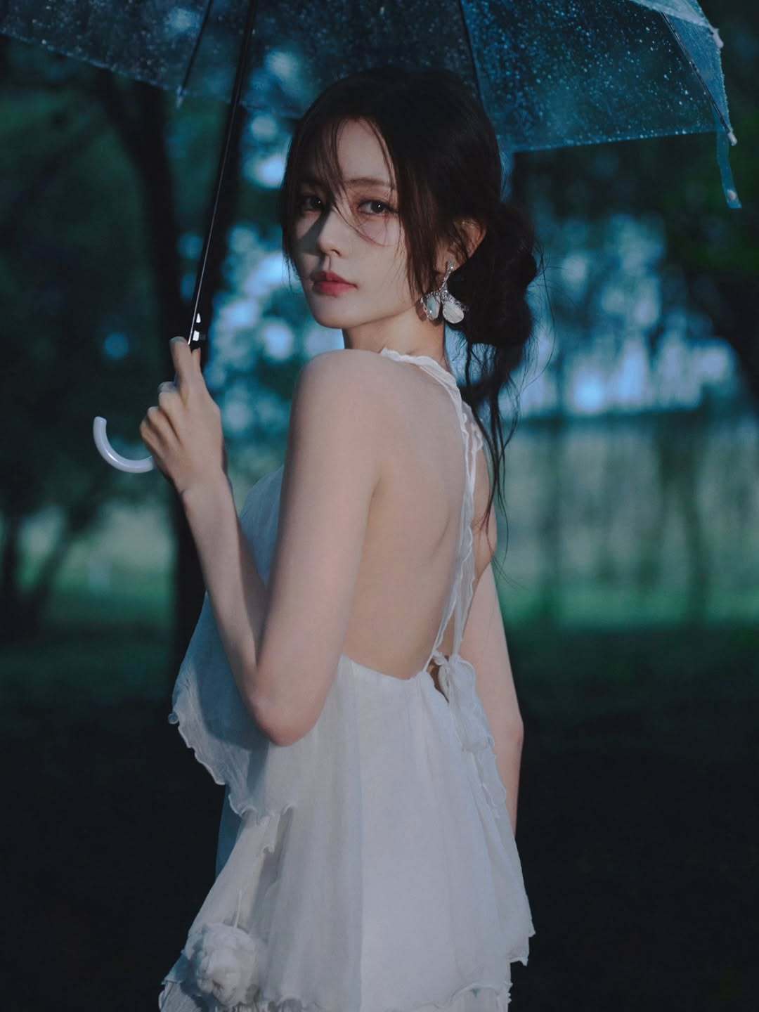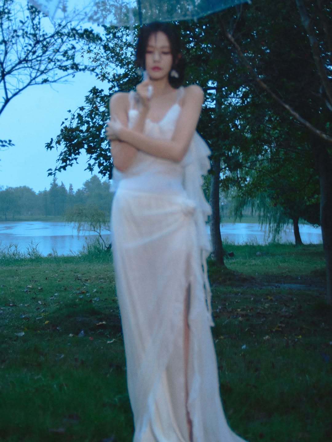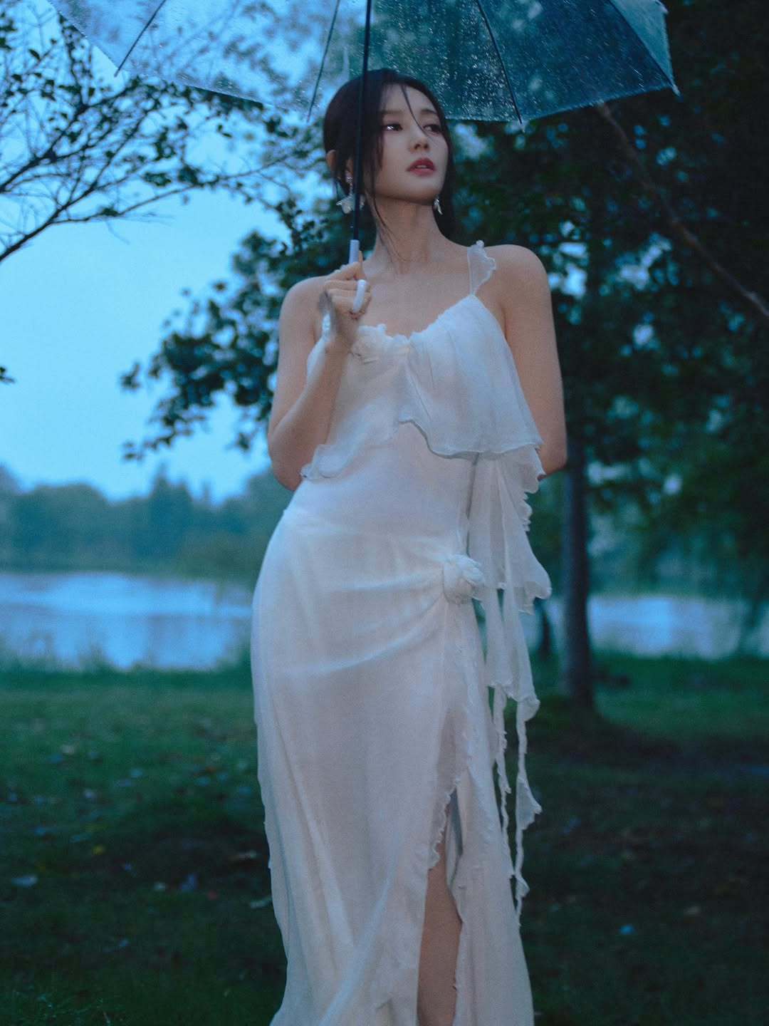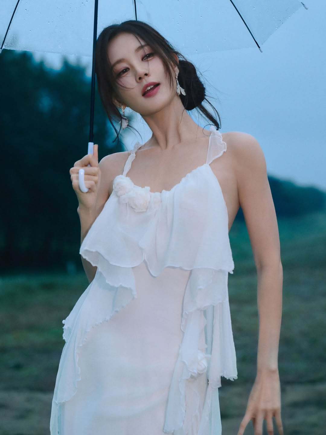 李一桐紫色水钻叠纱抹胸蓬蓬裙