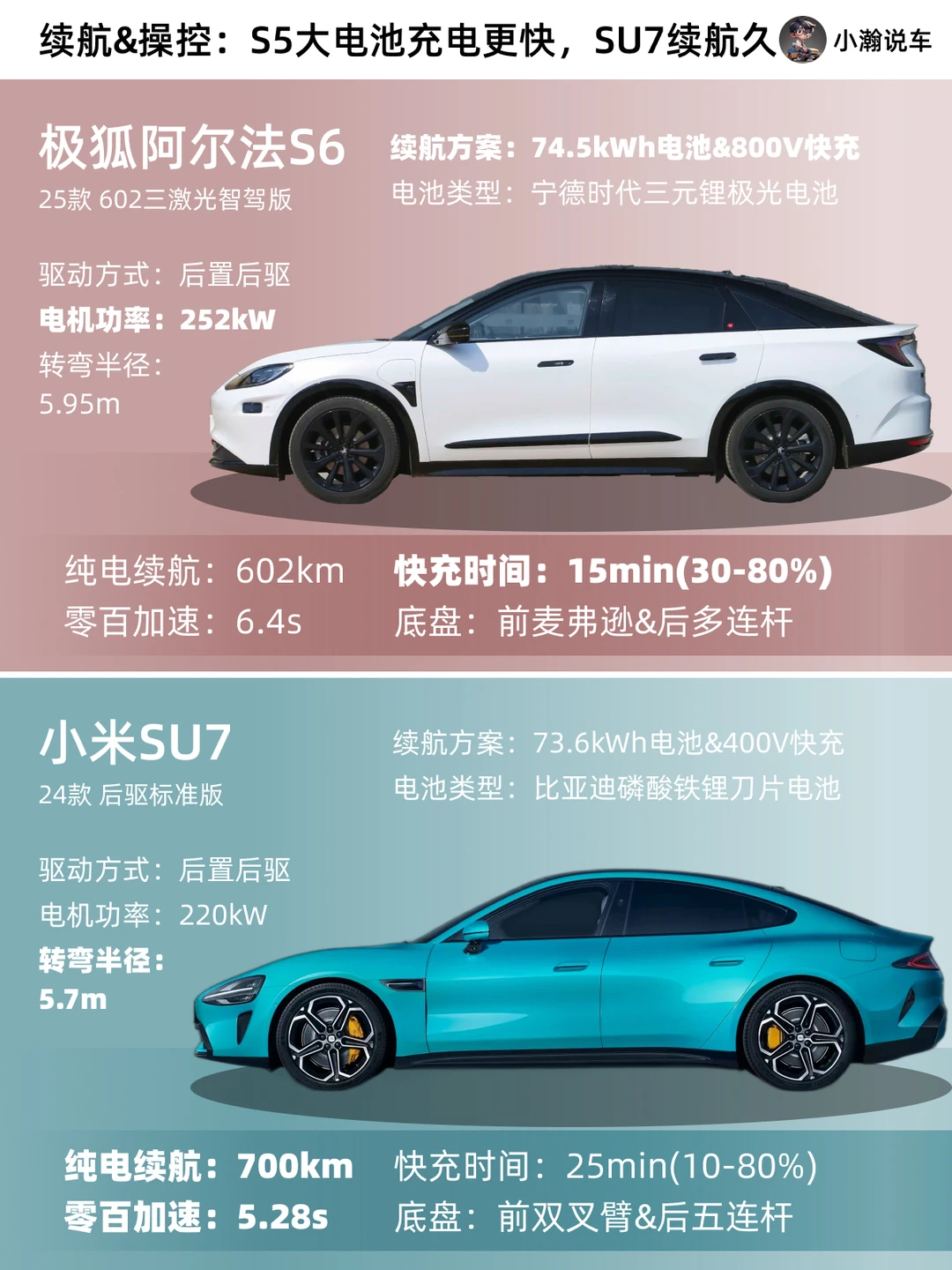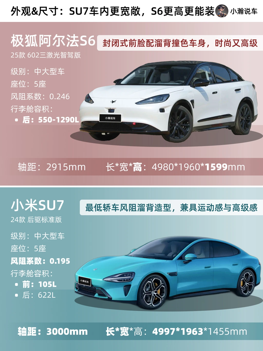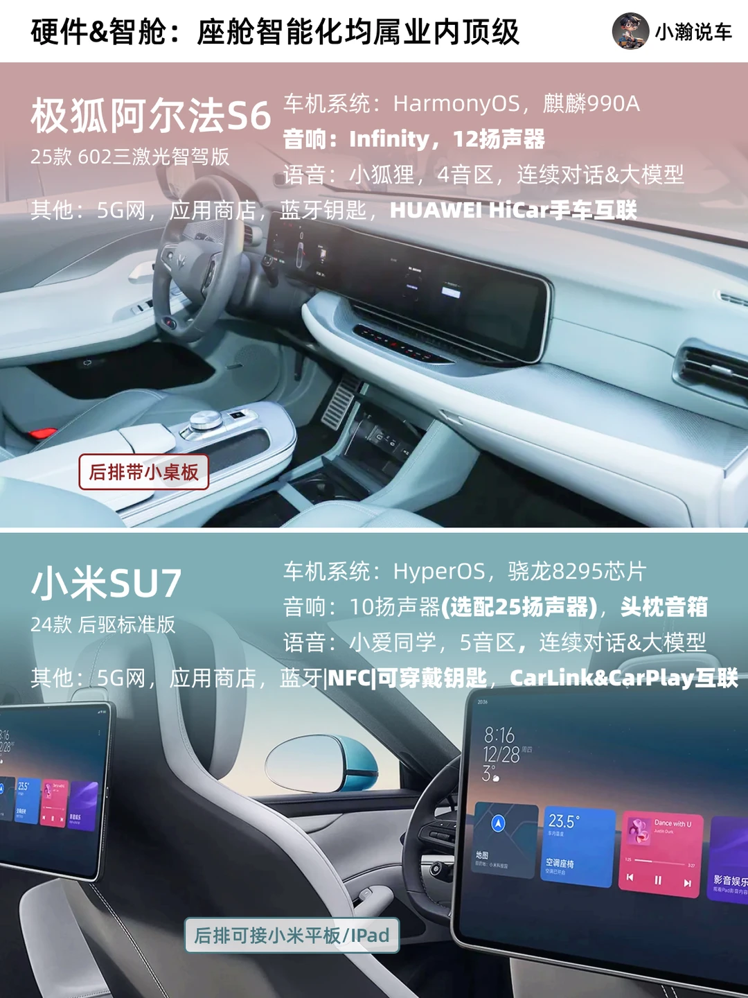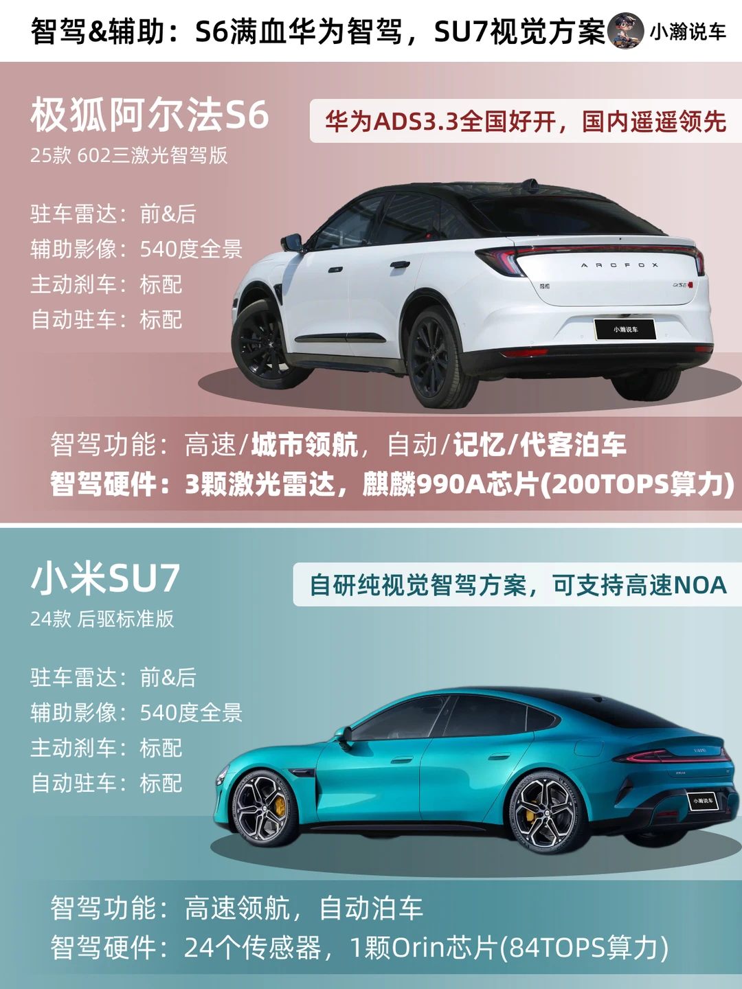 北汽新能源品牌极狐虽然很早就和华为联手了,却一直没能因此打开市场。直到去年的15万级性价比双雄S5、T5的问世才让更多宝子知道了这个品牌。 💡不过今天,极狐阿尔法S5的大哥——极狐阿尔法S6上市了,售价19.58-22.58万元!特别是高配版搭载了3颗激光雷达的华为乾坤智驾、再加上宁王的电池、800V的快充、麦格纳的平台架构,实力确实很抗打! 💡特别是在同城兄弟那款仅配备400V平台和纯视觉智驾的SU7入门版处在风口浪尖之时,你觉得全栈华为的高配极狐阿尔法S6能否和小米SU7一决高下呢?