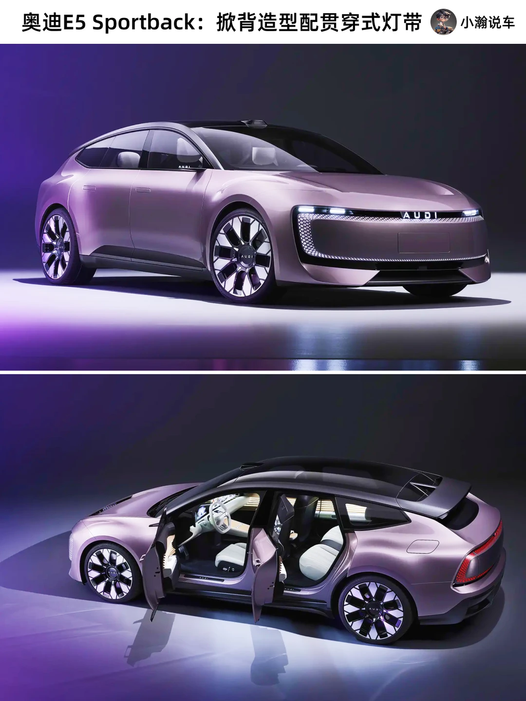 这台车是奥迪发布的新豪华电动品牌di一款量产车。贯穿式的环状灯带配上点亮后的AUDI字母标,科技感十足又有辨识度。当然作为智能纯电转型之作,奥迪E5 Sportback基于Advanced Digitized Platform打造,集成全场景数智座舱与L2++级辅助驾驶,更以后轮转向+空气悬架的硬核配置,重新定义电动轿跑的操控边界。