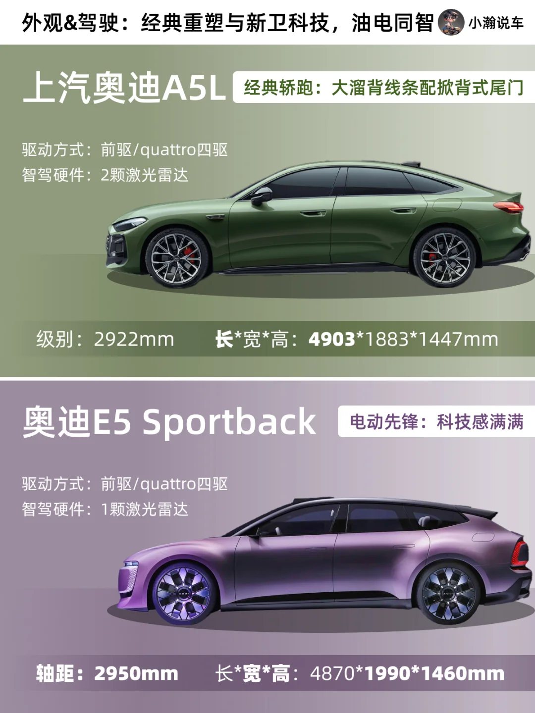 在这个智能驾驶渗透率突破40%的时代,国产新能源正以“软件定义汽车”的颠覆性逻辑重构行业规则。面对这场“智能革命”,传统豪华三强BBA里,奥迪首先开启了一场技术路径的自我革新!以上汽奥迪为例,其正努力用燃油车智能化与电动化双线突破,重新定义豪华新标准。在这次2025上海车展上,上汽奥迪带来的两款重磅新车型——奥迪A5L与奥迪E5 Sportback,正是其 “技术革新” 的战略缩影: