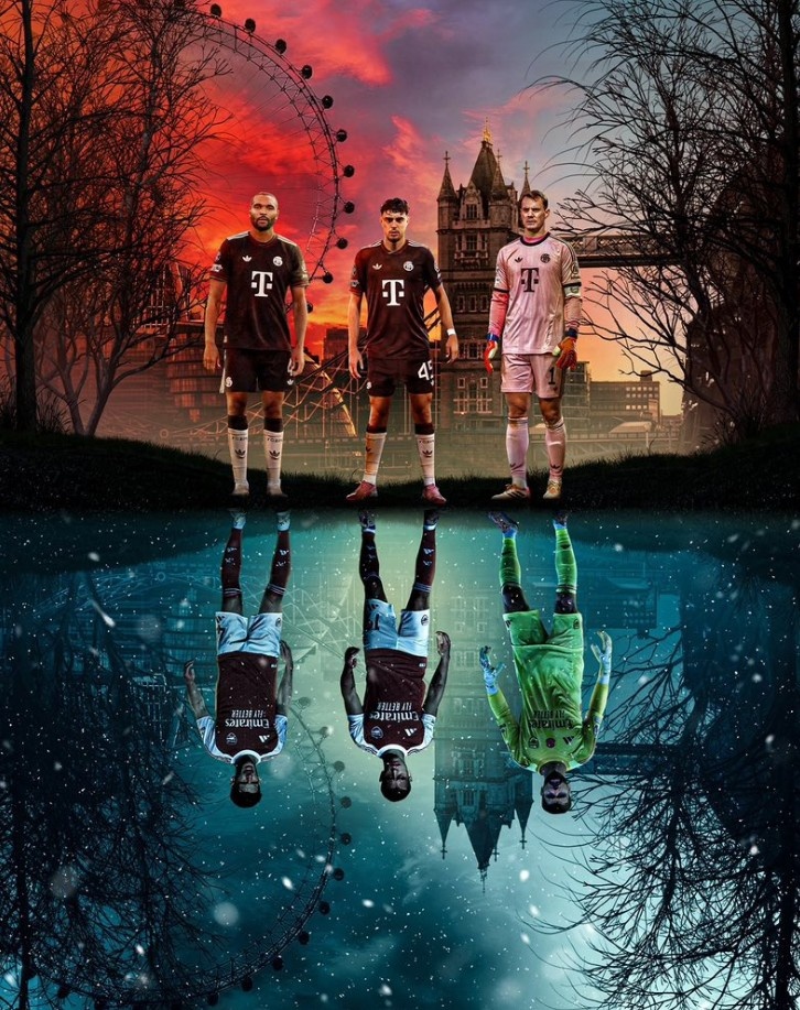 拜仁官方也晒出海报为本场比赛预热,海报中拜仁球员诺伊尔、帕夫洛维奇、塔出镜,湖中倒影则是拉亚、赖斯等枪手主将。拜仁官推配文写道:“最强矛与盾的交锋!”