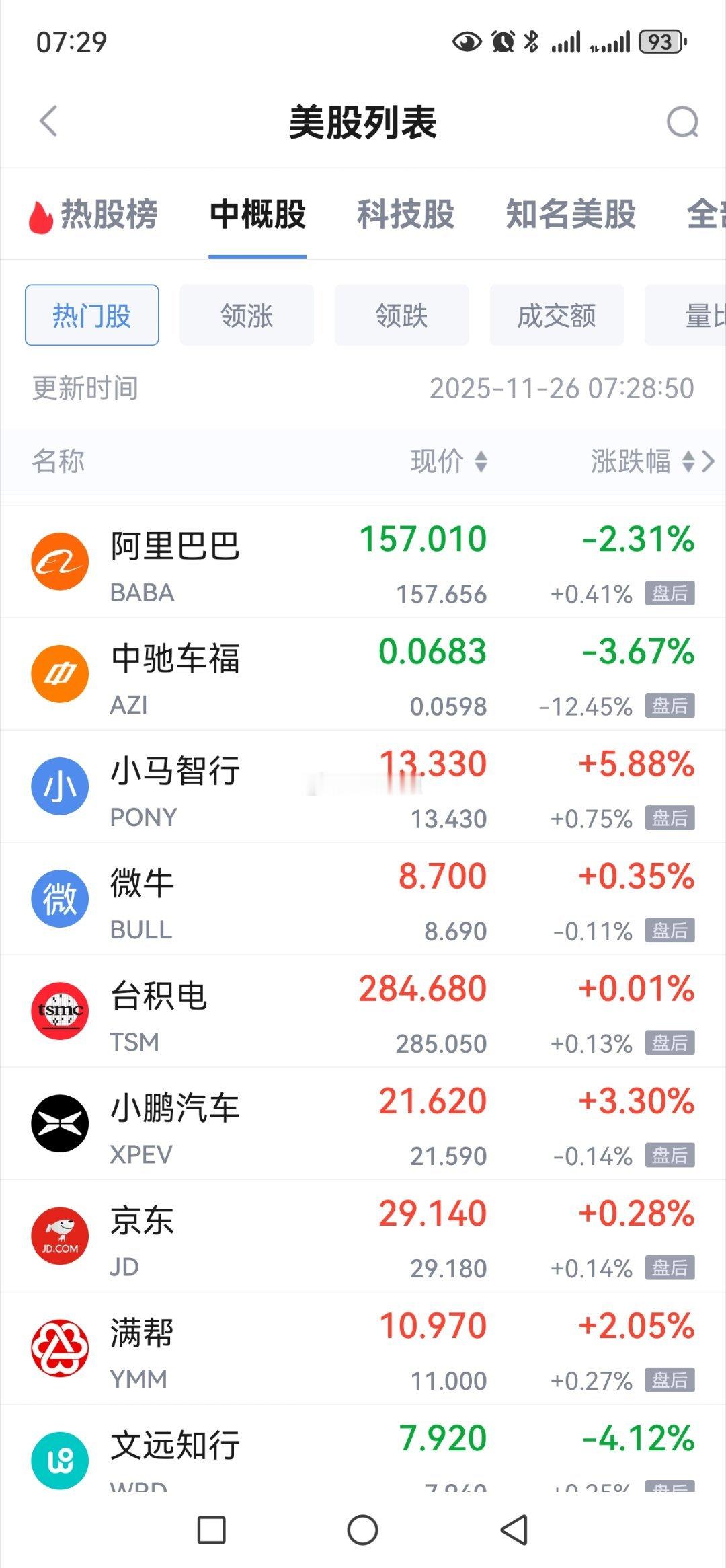 隔夜中概股涨跌不一 阿里巴巴下跌超2.3%京东飘红、蔚来调整、文远知行杀跌。