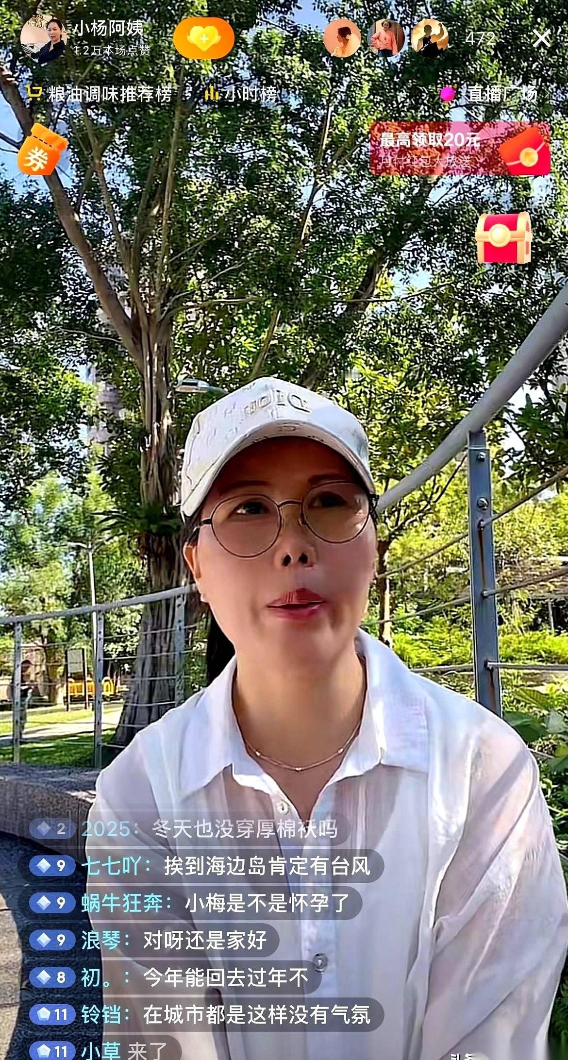 腊月中旬就回去。 小杨阿姨,坐不住了。离过年还有小三个月呢,心已经飞回河南驻马店了。 她说,什么北京,什么湾湾,那过的都不是年。 真正的年,是村里的大集,是灶台上的热气,是满院子跑的小孩,是那股子熟悉的、不用客套的味儿。 憋了好几年了。 心里那根弦,早就绷不住了。 你看她直播,聊到回家,眼睛里那个光啊,藏都藏不住。 底下人问东问西,问小梅是不是有了,问她走了孩子谁带。 她呢,厉害了,嘴一闭,直接跳过。 我特喜欢她这个反应。 有些事,是不能放在直播间里说的,那是她自己的生活,是她的铠甲,也是她的软肋。聪明人,都懂得分寸。 说白了,人就是这样。 你可以在任何地方扎根、赚钱、出名,但你的魂,永远只属于一个地方。 那个地方,叫家。 大都市给你体面,老家给你底气。 体面有时候是装的,但底气,是真的。