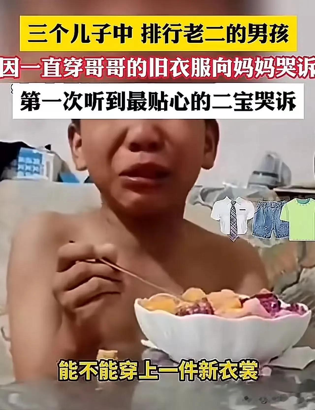 家里三个儿子,妈妈给哥哥和弟弟都买了新衣服,却没给老二买!老二忍不住问妈妈:“妈妈,你为什么不给我买一件新衣服呢?我为什么要一直穿哥哥的衣服?”妈妈说:“哥哥长高了,衣服小了必须要换新衣服,给你穿刚好……”可老二又说了一句话,让妈妈呆住了。 “可是妈妈,我穿哥哥的衣服,感觉像在穿别人的衣服一样,不是我自己的。你知道吗?每次穿着哥哥的衣服,我都觉得自己像个模仿者,不像我自己。”这句话像一把锋利的刀,刺得妈妈心里一阵阵疼。 其实,这个家庭的故事,远不止关于衣服的大小和新旧。它折射出的是一种普遍存在的家庭教育问题,也是一面镜子,映照出我们每个人内心深处对“被认可”“被重视”的渴望。 我们都知道,父母的爱是无条件的,但在现实中,很多时候,这份爱会被“表现”得不够公平、不够细腻。妈妈的解释很简单:哥哥长高了,衣服小了,必须换新;弟弟还小,穿得还可以。可是,老二心里的那份不满,远比衣服的大小更深沉、更复杂。 他在用行动告诉妈妈:“我也想被看见,我也想拥有属于我自己的东西。”这不只是关于衣服的事情,而是关于被认可、被理解的渴望。孩子们的心声,往往被成人忽略,他们用最直接的方式表达自己的需求——那就是“我在你心里的位置”。 这让我想到,很多成年人也许都曾有过类似的感受。我们在成长的过程中,渴望被父母、被社会认可,但往往因为各种原因,得不到足够的关注和理解。于是,我们学会了隐藏自己的需求,把自己的价值寄托在别人的眼光里,甚至在无形中,成为了“别人的影子”。 回到这个家庭,妈妈的反应或许是出于善意,但也暴露出一个问题:我们是否太过于关注“表面上的公平”,而忽略了每个人内心的真实感受?每个孩子都需要属于自己的空间和认可,不只是衣服的大小,更是心灵的温暖和理解。 这件事情,让我想到一个深刻的道理:家庭的温暖,不在于物质的丰富,而在于彼此的理解和包容。父母的爱,应该像阳光一样,温暖每一个孩子的心房,而不是用“大小”或“条件”来衡量。 那么,作为父母,我们能做些什么?也许,是在为孩子们准备衣服的时候,更多地倾听他们的心声,理解他们的需求。不要只看表面,更要洞察他们的内心。让每个孩子都知道,无论衣服是否崭新,无论身高如何变化,他们都是独一无二、被深爱的存在。 这件事也提醒我们,社会上的“公平”并不意味着“每个人都一样”。真正的公平,是理解差异,尊重个性。每个人都值得拥有属于自己的空间和被认可的感觉。就像那句老话:爱不是平等,而是理解。 所以,下次当你看到身边的孩子或者身边的朋友,他们因为某些小事而不开心,也许可以试着换位思考:他们是不是也在渴望一份特别的关爱?他们是不是也在用自己的方式告诉我们:“我需要你多一点关注和理解。” 家庭的温暖,正是来自于这些细腻的关怀。我们每个人,都有成为更好“父母”或“朋友”的潜能,只要愿意用心去倾听,用爱去包容。毕竟,生活中最宝贵的,不是那些物质的东西,而是那份真心的理解和陪伴。 这故事,或许会让你我都反思:我们是不是也在不经意间,忽略了身边那些渴望被理解的“老二们”?让我们从今天开始,用更多的耐心和爱,去温暖每一个需要的人吧。因为,真正的幸福,就是在彼此的理解中,找到属于自己的那份安宁。家庭 衣服 妈妈 关爱
