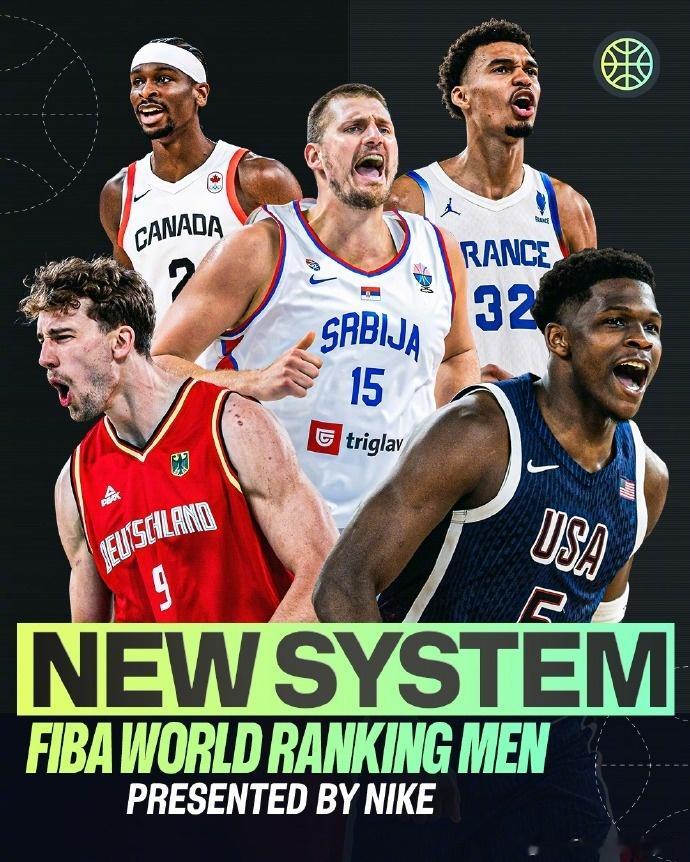 ⏰全新的国际篮联男子世界排名积分体系将从2027FIBA世界杯预选赛第一窗口期开始实行。各队此前的世界排名与积分保持不变。