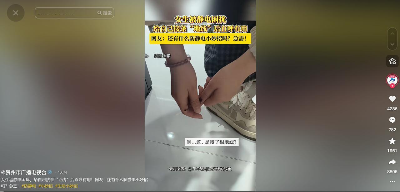 太有头脑了!安徽一女子被静电困扰,几乎天天都被电,她灵机一动,竟然拿了3个曲别针,别在裤腿上,手动连了一根“地线”,马上就有效果,裤子也不吸附在腿上了,也没有静电了。网友:静电产生的原因是穷! 这位女生之前算是被静电拿捏得死死的,一到冬天她就成了 “人形发电机”,走到哪电到哪。早上穿衣服,脱件羊毛衫能瞬间变成 “爆炸头”,头发根根竖起,好半天顺不回来,最让她崩溃的是那条保暖的加绒裤,穿不了半天就牢牢吸附在腿上,紧紧裹着皮肤,走路时磨得生疼,出门在外还得趁没人注意偷偷拽裤脚,别提多尴尬了。 更要命的是不管是碰金属门把手、电梯按钮,还是和别人不小心碰到手,都会被静电狠狠电一下,那种针扎似的痛感,让她对每一次伸手都充满阴影。 被逼到没办法的她,突然灵机一动想起了中学物理课上学过的知识,她找来 3 个普通的曲别针,把它们首尾相扣串起来,做成了一条十多厘米长的简易金属链。 然后把这串曲别针链的一头,轻轻夹在加绒裤的裤脚内侧,另一头自然垂落下来,要么接触鞋面,要么走路时偶尔扫过地面,谁能想到这么简单粗糙的操作,效果竟然立竿见影! 原本紧紧裹在腿上的加绒裤,瞬间就恢复了垂坠感,走路再也没有那种磨腿的束缚感,轻快了不少,更惊喜的是之后再去摸金属物体,那种被静电电到的刺痛感彻底消失了,再也不用小心翼翼地试探,就这么 3 个不起眼的曲别针,硬生生给她做了一套 “防电装甲”,既解决了裤子吸附的问题,又告别了静电困扰。 其实这背后的原理一点都不复杂,就是利用了金属导电的特性,冬天天气干燥,尤其是北方有暖气的环境,空气湿度一旦低于 40%,加绒裤里常见的聚酯纤维就特别容易产生静电。 人体积累的电荷没地方释放,一碰到导体就会瞬间爆发,这就是为啥会被电到,而这位女生做的曲别针链,相当于给身体接了一根随身移动的 “地线”,金属曲别针是导体,能把人体囤积的静电,顺着裤腿、鞋面平稳地导向大地,避免了电荷瞬间集中释放造成的电击感。 网友们看到这个妙招后,一边疯狂点赞一边开启了调侃模式:“这才是真正的生活小智慧,低成本高回报”“静电产生的原因怕不是穷!要是穿纯棉、真丝的衣服,哪会有这么多静电烦恼”。 玩笑归玩笑比起这个就地取材的妙招,网上流传的其他防静电偏方,比如在口袋里揣节干电池、拿大铁夹子夹袖口,就显得有点 “玄学” 了,北京化工大学的李教授就曾说过,这些方法大多是心理安慰,要是金属导体没有形成通向大地的路径,电荷依然会被困在身上,该被电还是得被电。 如果觉得曲别针链拖在地上有点不方便,解决静电还有更根本的办法,还是得从环境和衣物入手,与其花大价钱买那些号称能防静电的智商税产品,不如踏踏实实把室内加湿器打开,把空气湿度维持在 50% 以上,从根源上减少静电产生,或者在碰金属物体,比如开车门、按电梯前,先用指甲盖轻轻碰一下试探,也可以学学老司机的经验,拿着钥匙尖先去 “打个火”,让静电提前释放。 其实生活里的很多小烦恼,都不需要复杂的高科技,只要动点脑筋,用点小常识,就能轻松解决,就像这位安徽女生,3 个曲别针花不了几分钱,却解决了冬天最让人头疼的静电问题,不得不说太有头脑了,冬天被静电困扰的朋友,不妨也试试这个妙招,或者根据自己的情况调整,相信总能找到适合自己的解决办法,让这个冬天过得更舒坦些。 (信息来源:贺州电视台)