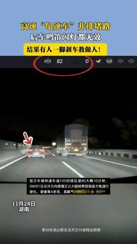 心不是一般的大!湖南高速上,一辆小车在最左侧快车道,却只开80迈,和旁边大货车速度一样,把路给堵死了,后车一直闪灯都没用。网友:“小车司机:家人们谁懂啊?后车一直闪我!” 碰见这种不会开车的人,脾气不好的人真的忍不住。 高速快车道本来就是用来给超车用的,可这个小车倒好,全程慢慢悠悠开着,就像马路是自家客厅一样。 后车本来开的120迈,到跟前了不得不降到80迈,否则就撞上了! 更气人的是旁边的大货车本来速度也不快,两辆车直接并排行驶了,把路还给堵住了,想超车都没地方超。 后车只能不停地闪灯示意,可前车就像完全看不着一样,一点提速的想法都没有! 关键时刻,另一辆车子忍不住了,直接从右侧紧急车道超车,开到了小车的前方。但他没有直接开走,反而踩了一脚点刹,开的比小车还慢。 哪怕小车只有80迈,面对这种情况也不得不再降速,只能被堵在后面,也算是让他体会到了其他人的感受。 高速上龟速行驶,尤其是在快车道龟速行驶,危害真的很大。容易造成堵车不说,万一后车反应不够及时,没踩住刹车,轻则刮蹭,重则追尾,这可不是闹着玩的。 所以也难怪其他车主那么生气,甚至要以其人之道还治其人之身了。不过有一说一,这种粗暴反制的行为也不值得提倡。 在应急车道超车本身就是违法违规行为,特意跑到小车前面点刹,虽然出了一口恶气,但在高速上这种行为非常危险。 不管再生气,也没必要冒着自己出事的风险去“惩罚”对方。遇到这种情况,及时记录下车牌号,向交管部门举报这种龟速占道行为才是上上之策!