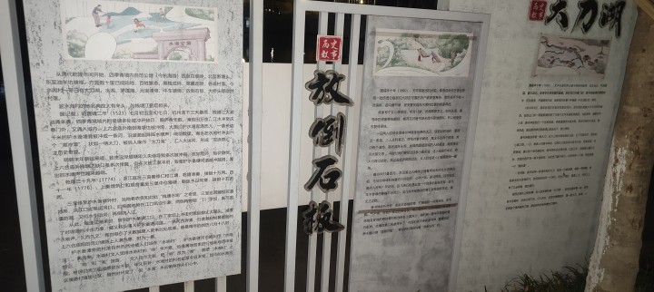 陈先生反映的牌子,位于水湘人家东苑东门外,京杭大运河旁的游步道上。接到反映后,橙柿直通车记者在现场看到了这块牌子,上面写着“放倒石板”的来历: