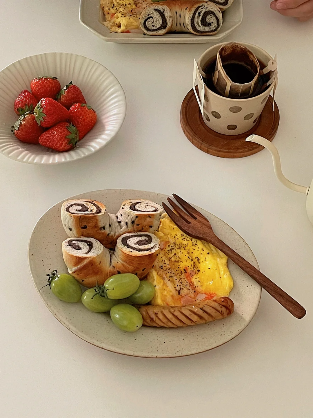 一周早餐不重样,是好好吃饭的日常[星R] 元气满满的一天从breakfast开始~ 这种一盘端就是最简单快手的做法,10分钟就搞定 可以搭配任何喜欢的水果🫐🍓🥝面包🥯🍞🥖 一般就是会在周末制作面包口粮,分切冷冻 提前一天晚上拿出来解冻,第二天直接加热即可 上周末口粮:黑芝麻贝果和抹茶吐司 能看得出来出镜率特别高吧[萌萌哒R]