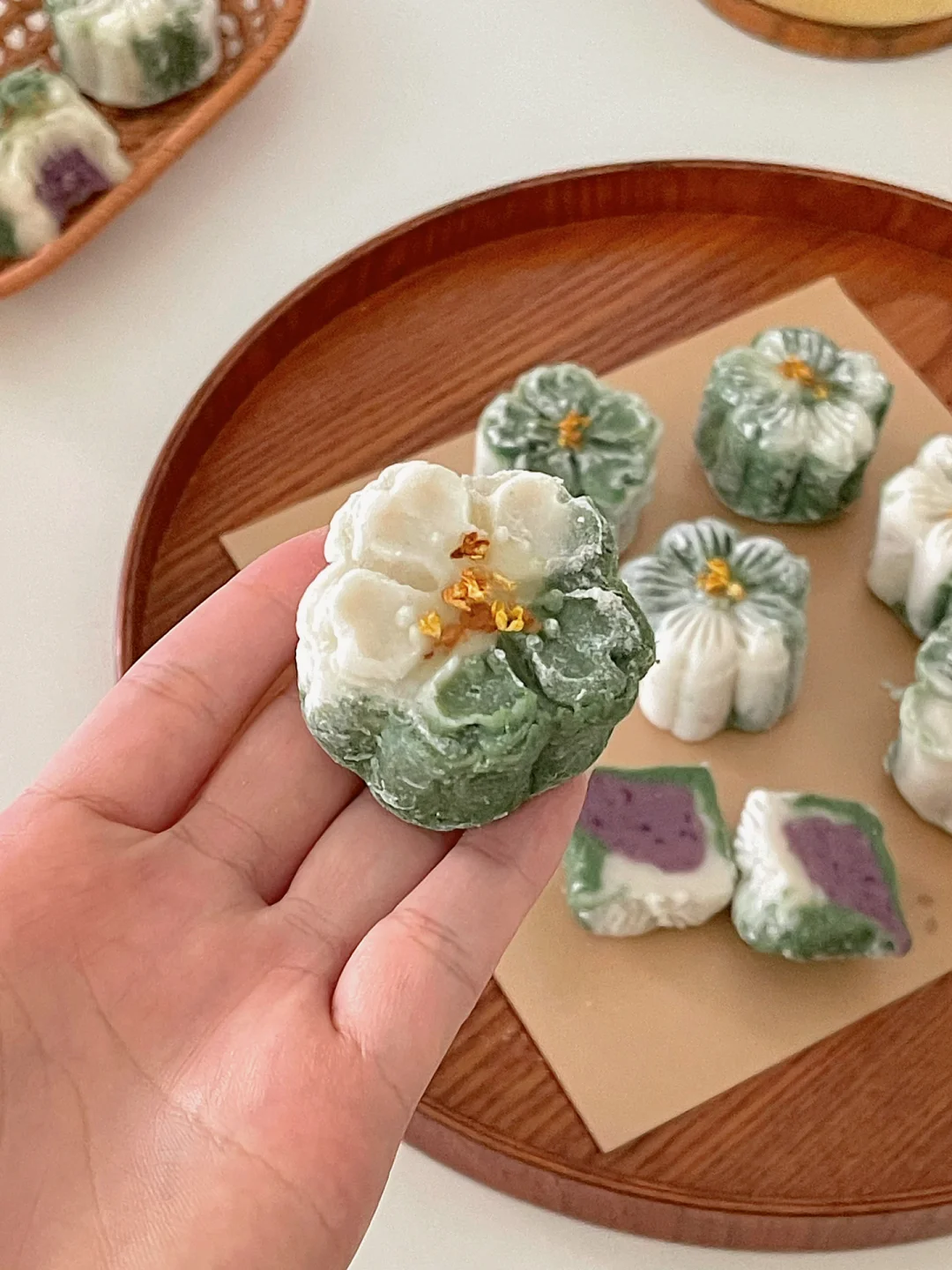 4️⃣山药团和抹茶里面各揪出16克左右混合成团