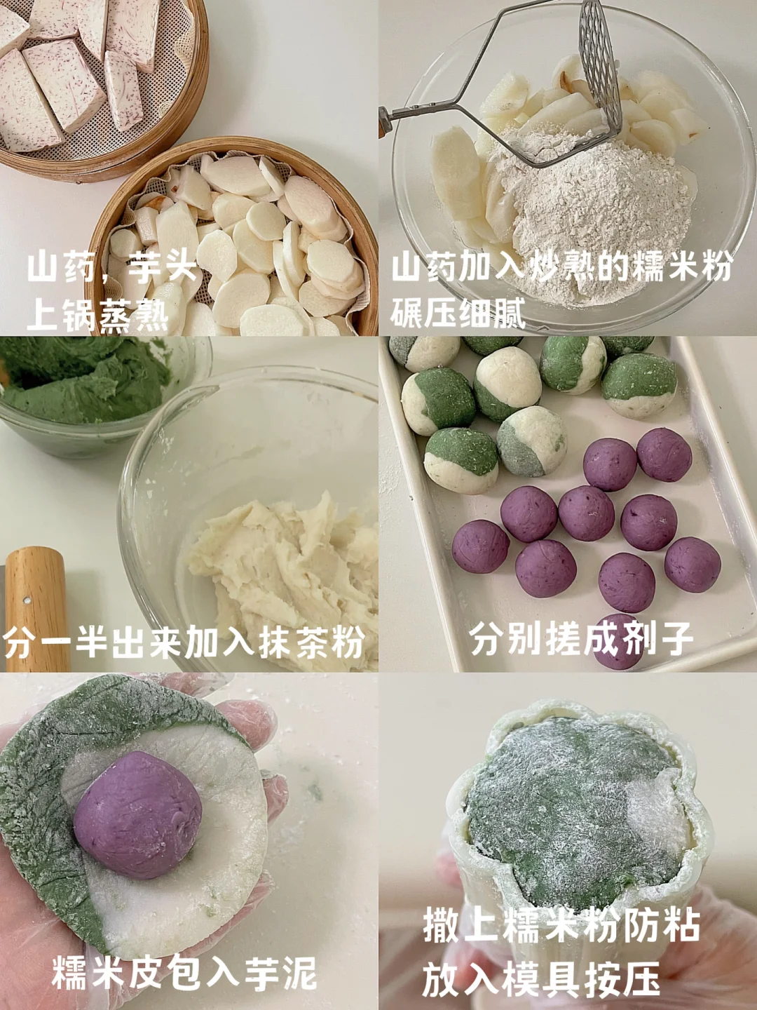 山药300克|糯米粉65克|抹茶粉3克|芋头150克