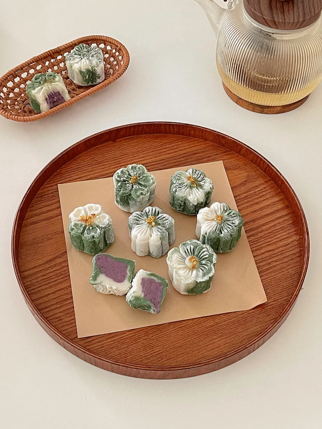 滚一圈,然后放入模具里面,平放用力压出花纹即可
