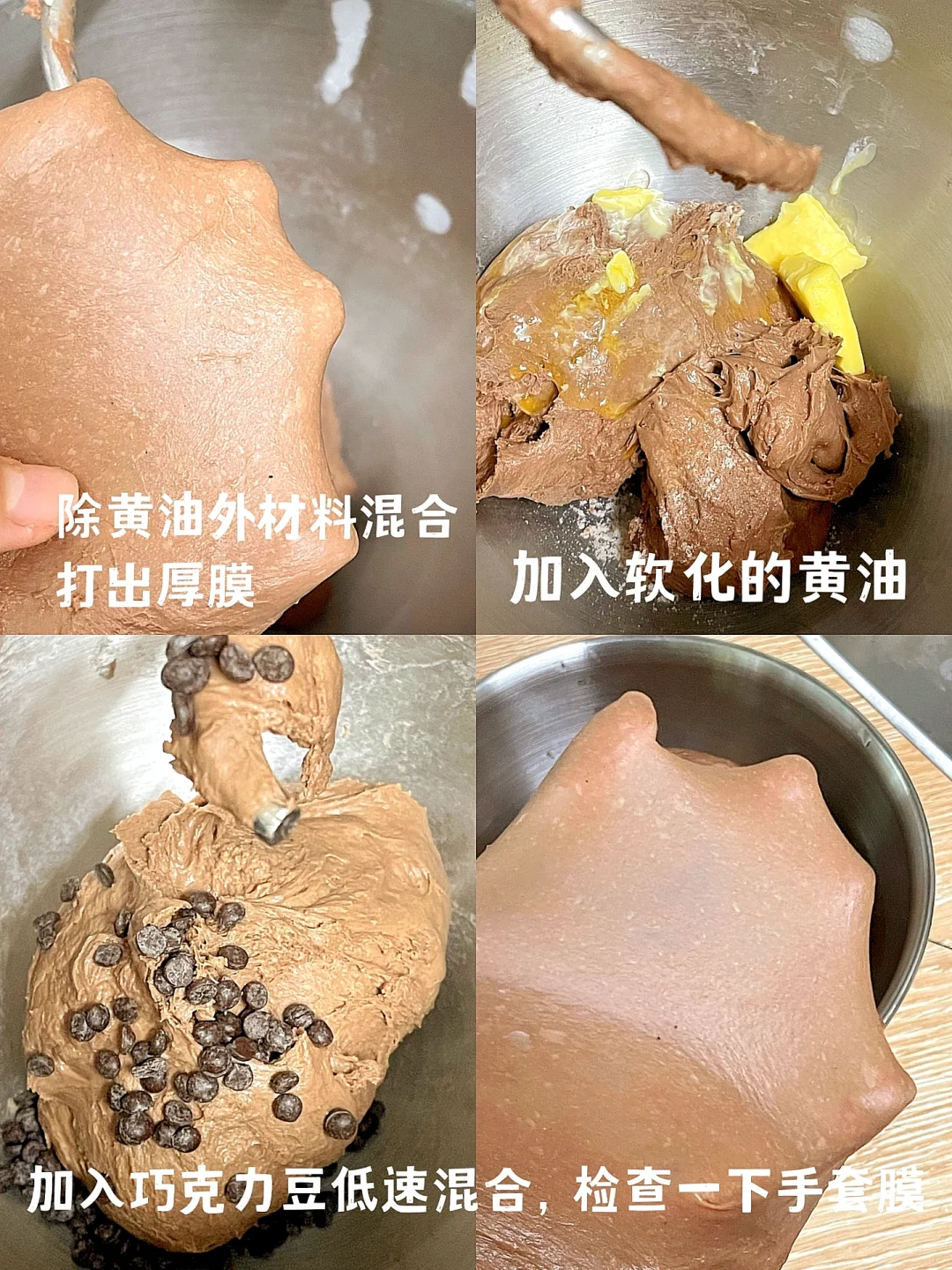 出手套膜,倒入巧克力豆低速混合均匀