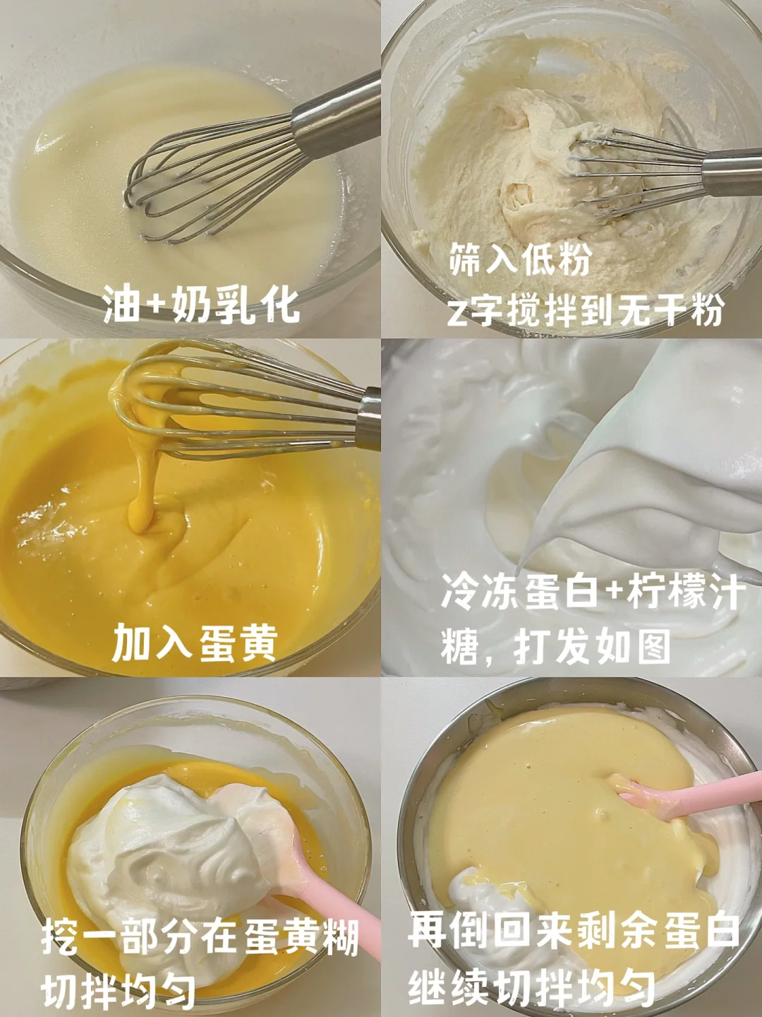 ❗️混合蛋黄糊蛋白霜要用切拌手法,从底下往上抄