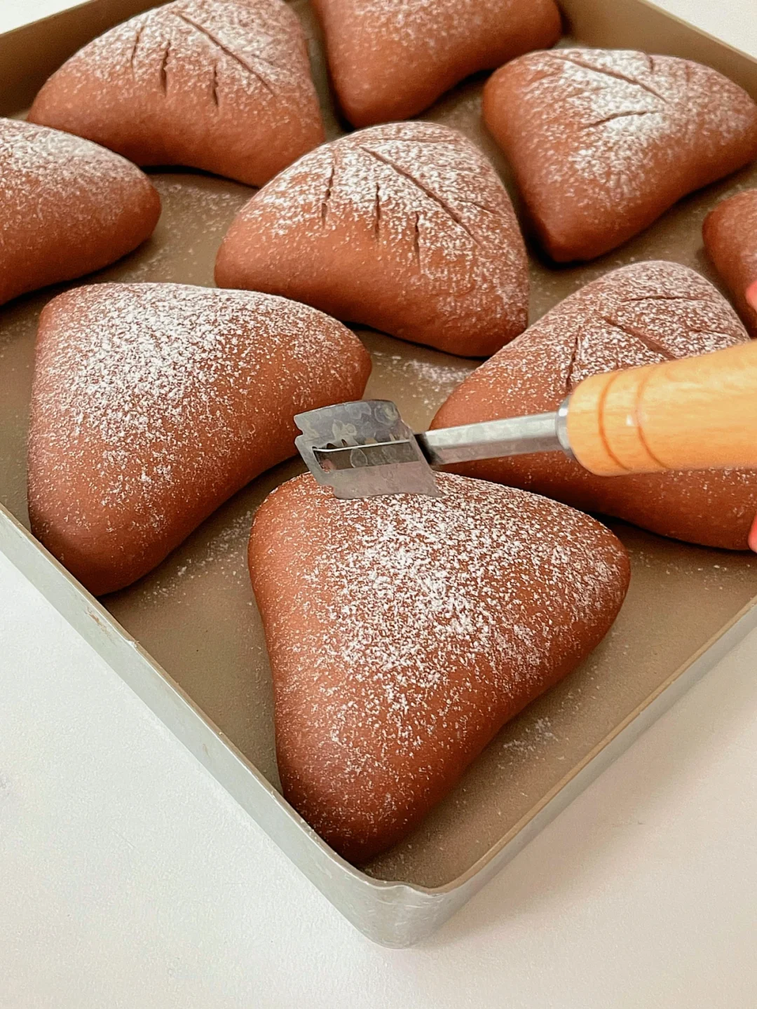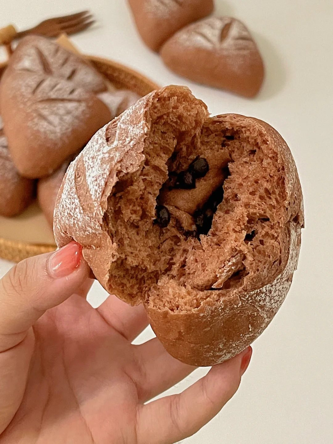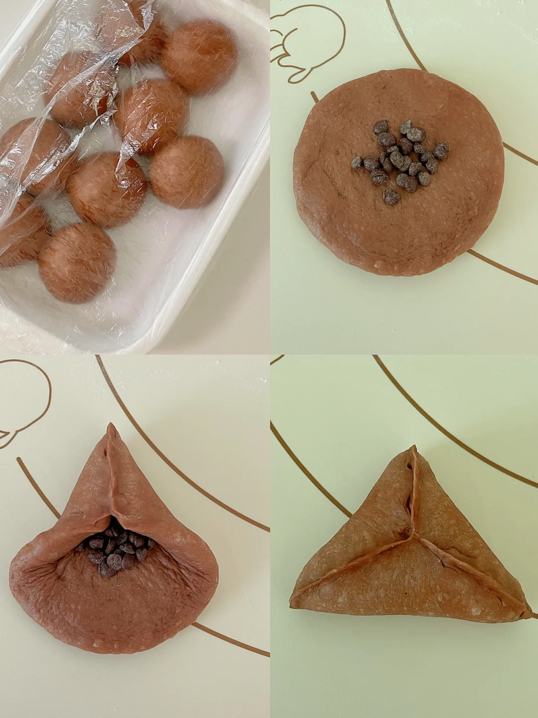 4️⃣取一个小面团排气,包入巧克力豆(参考图5)