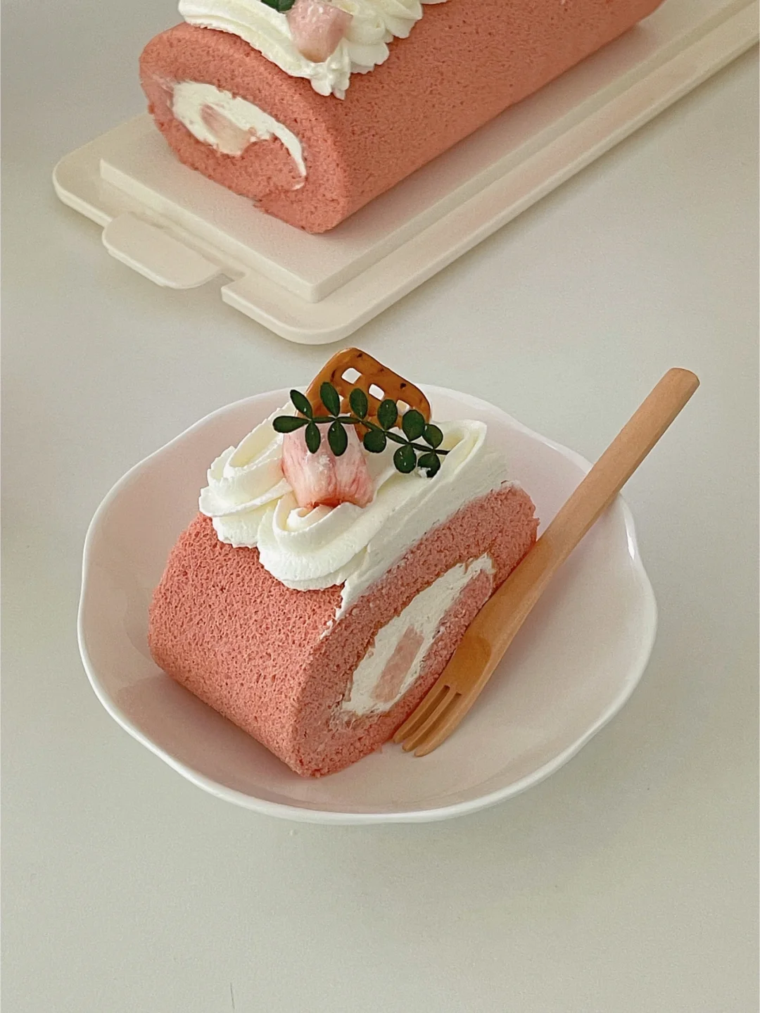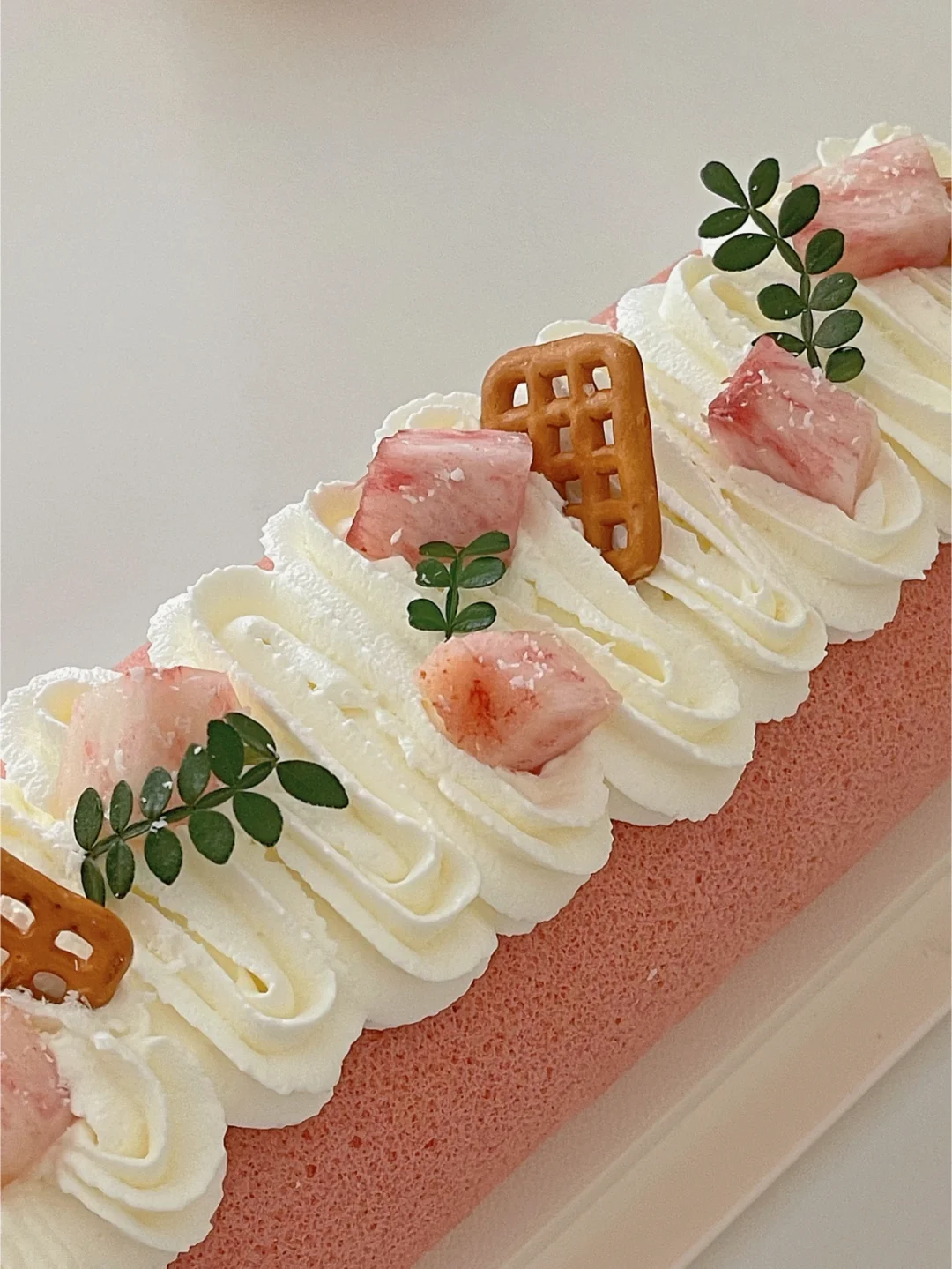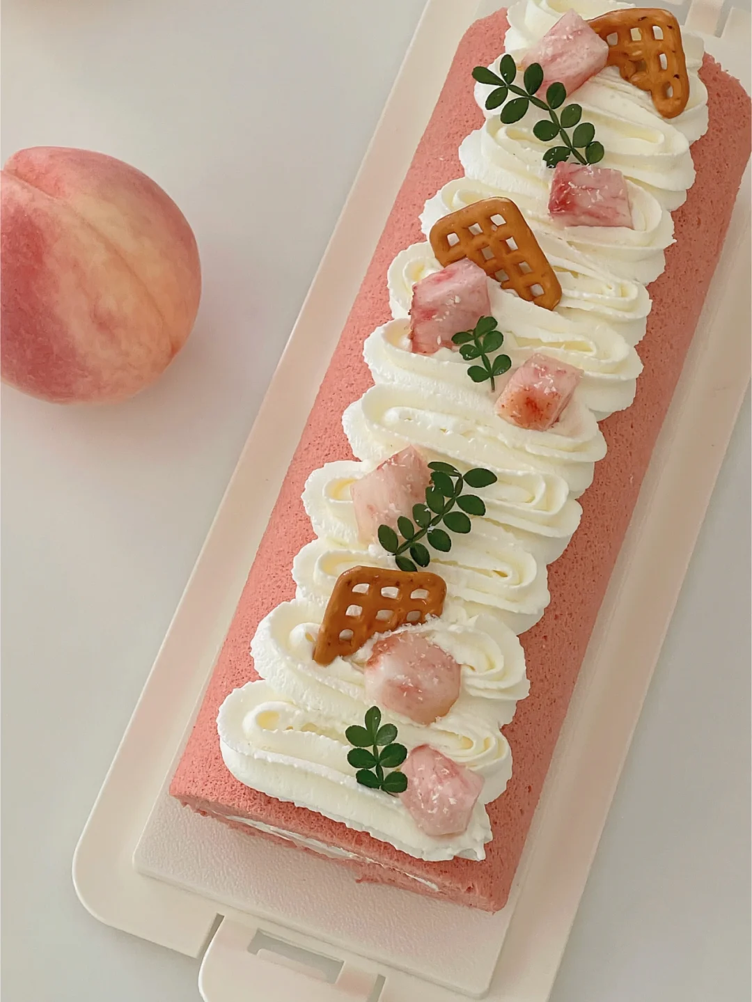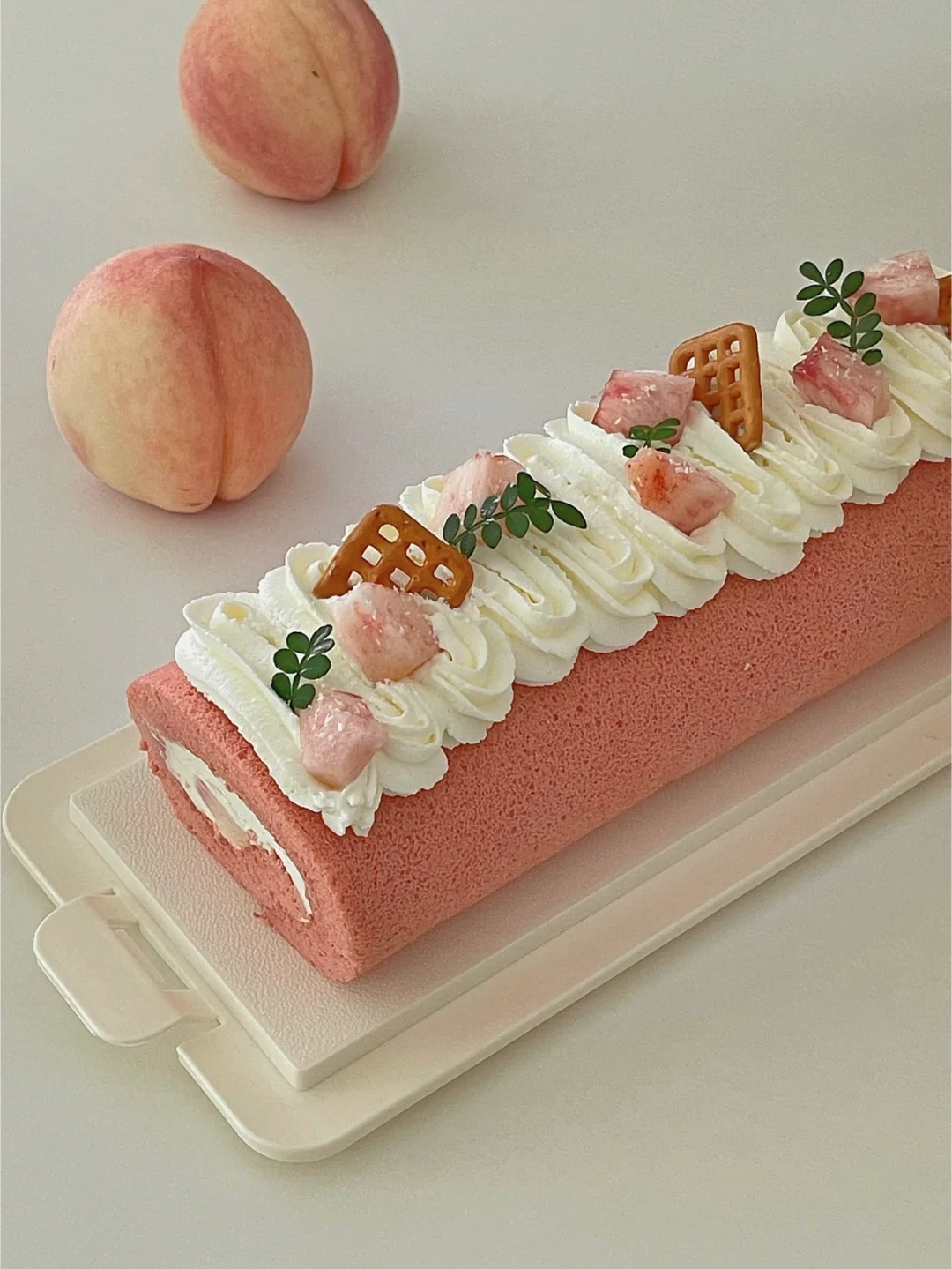松软的戚风搭配奶油+新鲜的桃子果肉