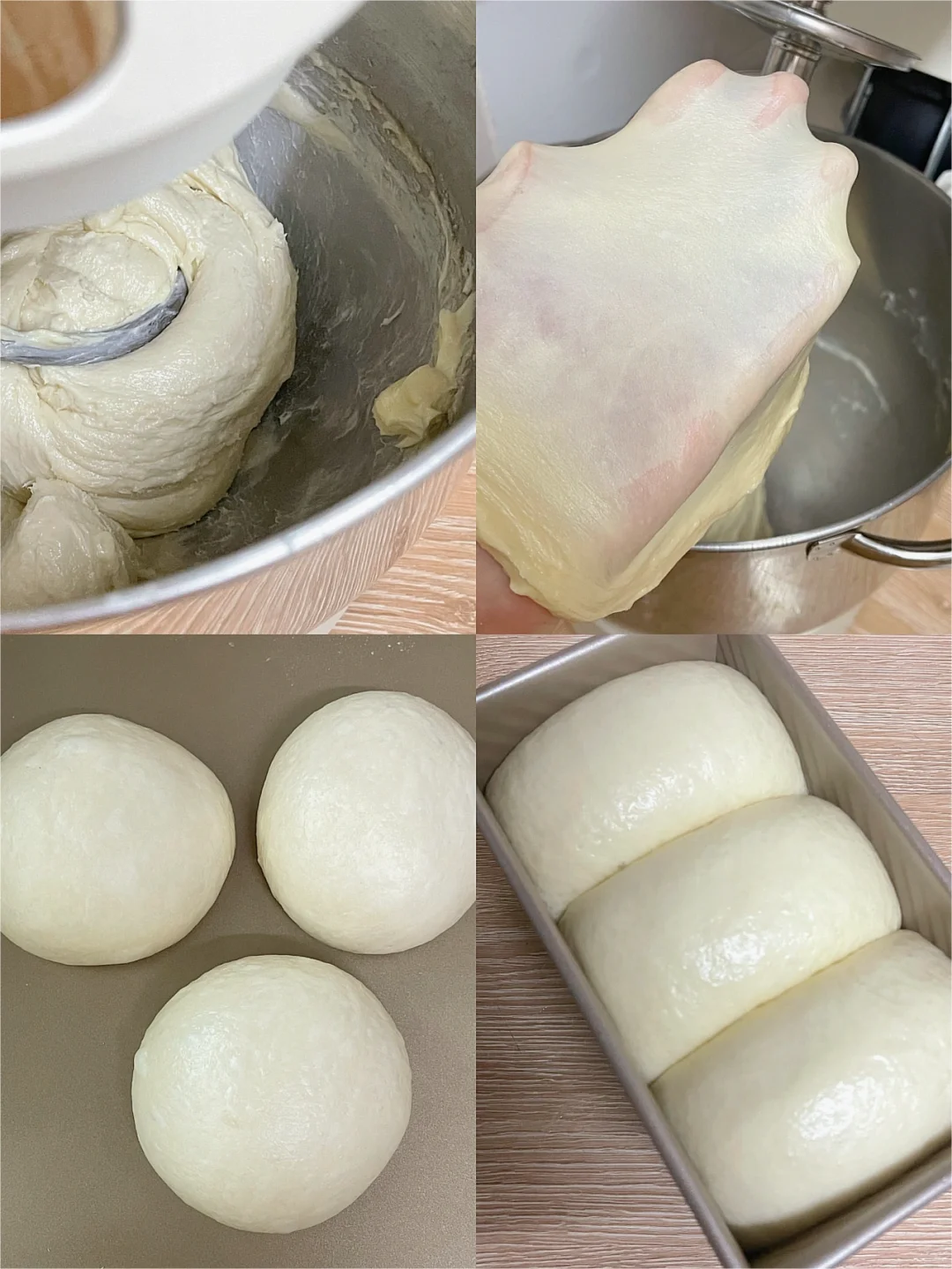 5️⃣低速搅拌均匀再开4档揉到有韧性,破洞光滑的薄膜
