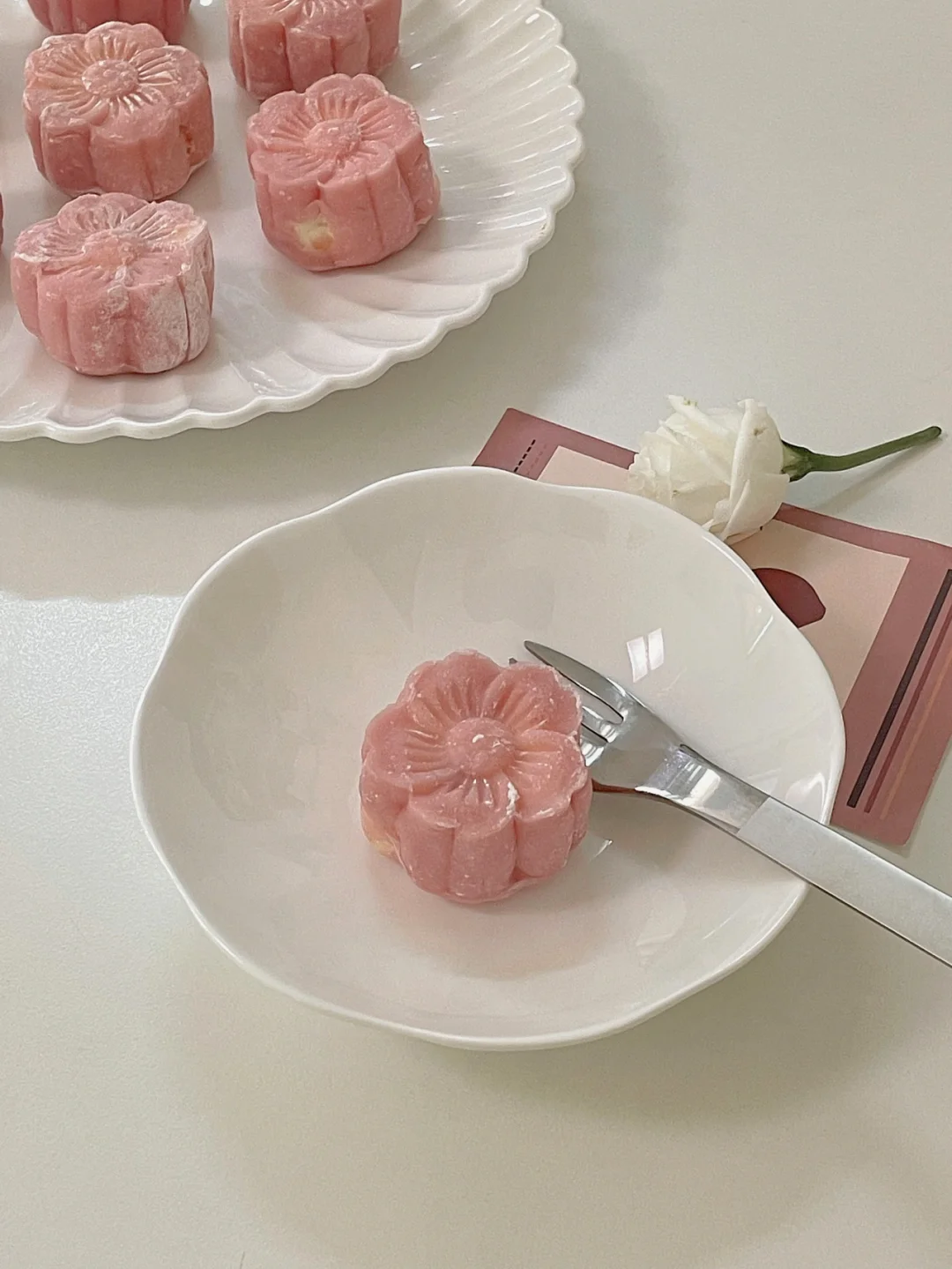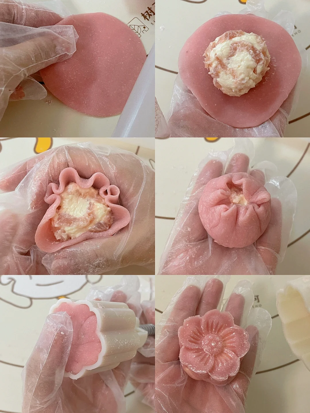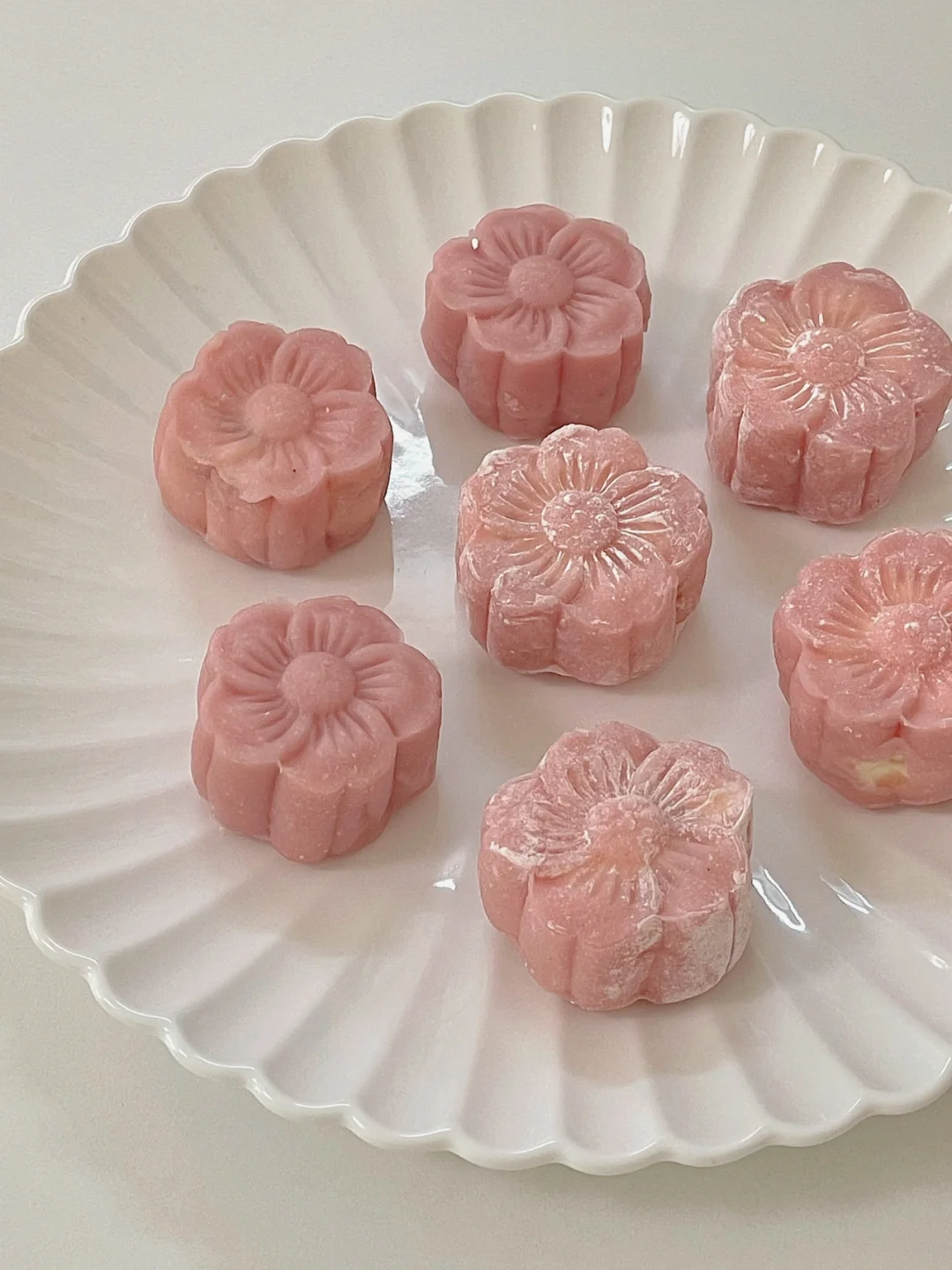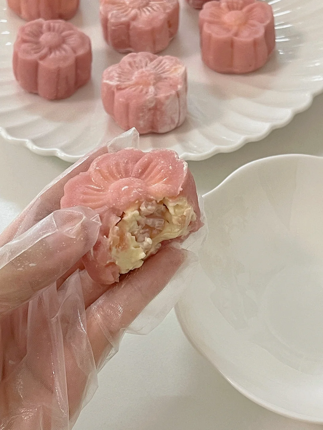 5️⃣20g皮和25g奶酪馅,糯米粉撒上模具好脱模