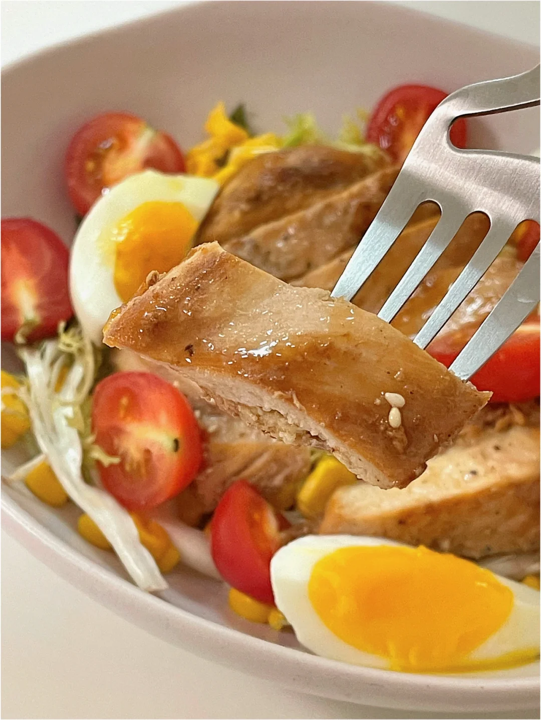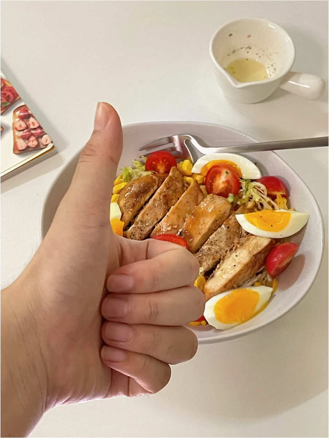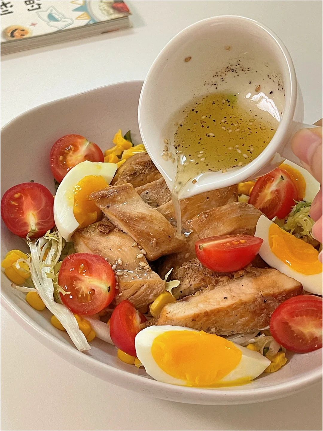 鸡胸肉和各种蔬菜~自调油醋汁超开胃