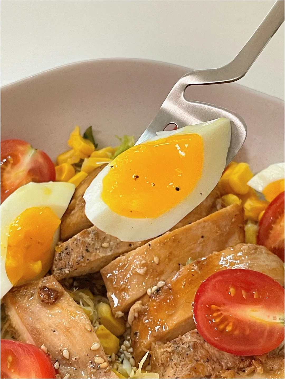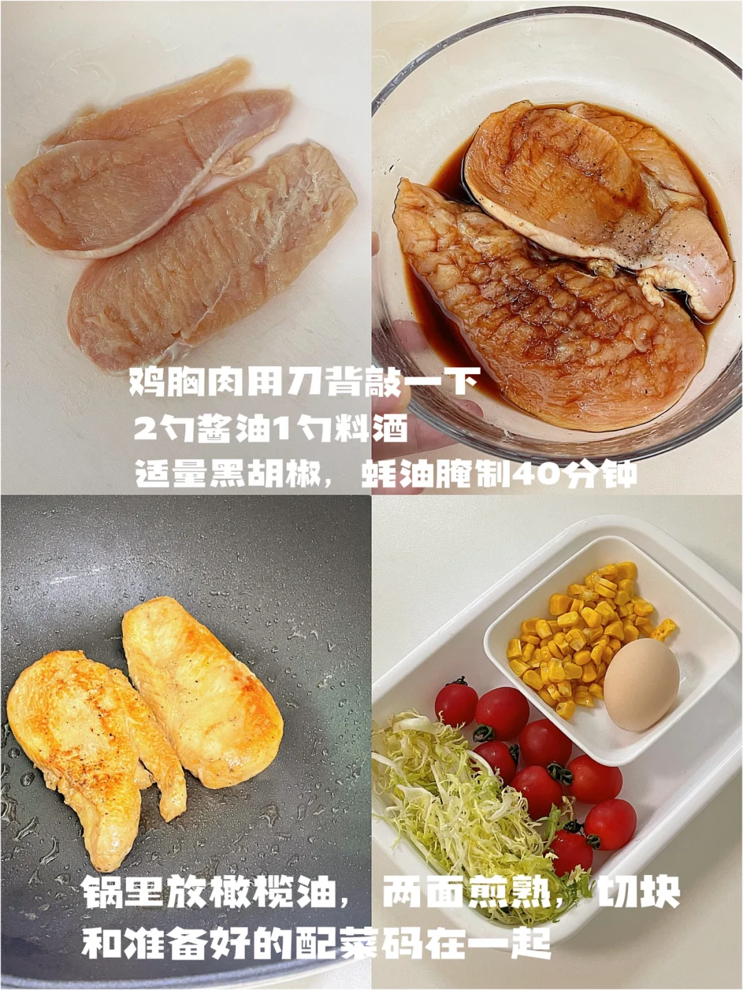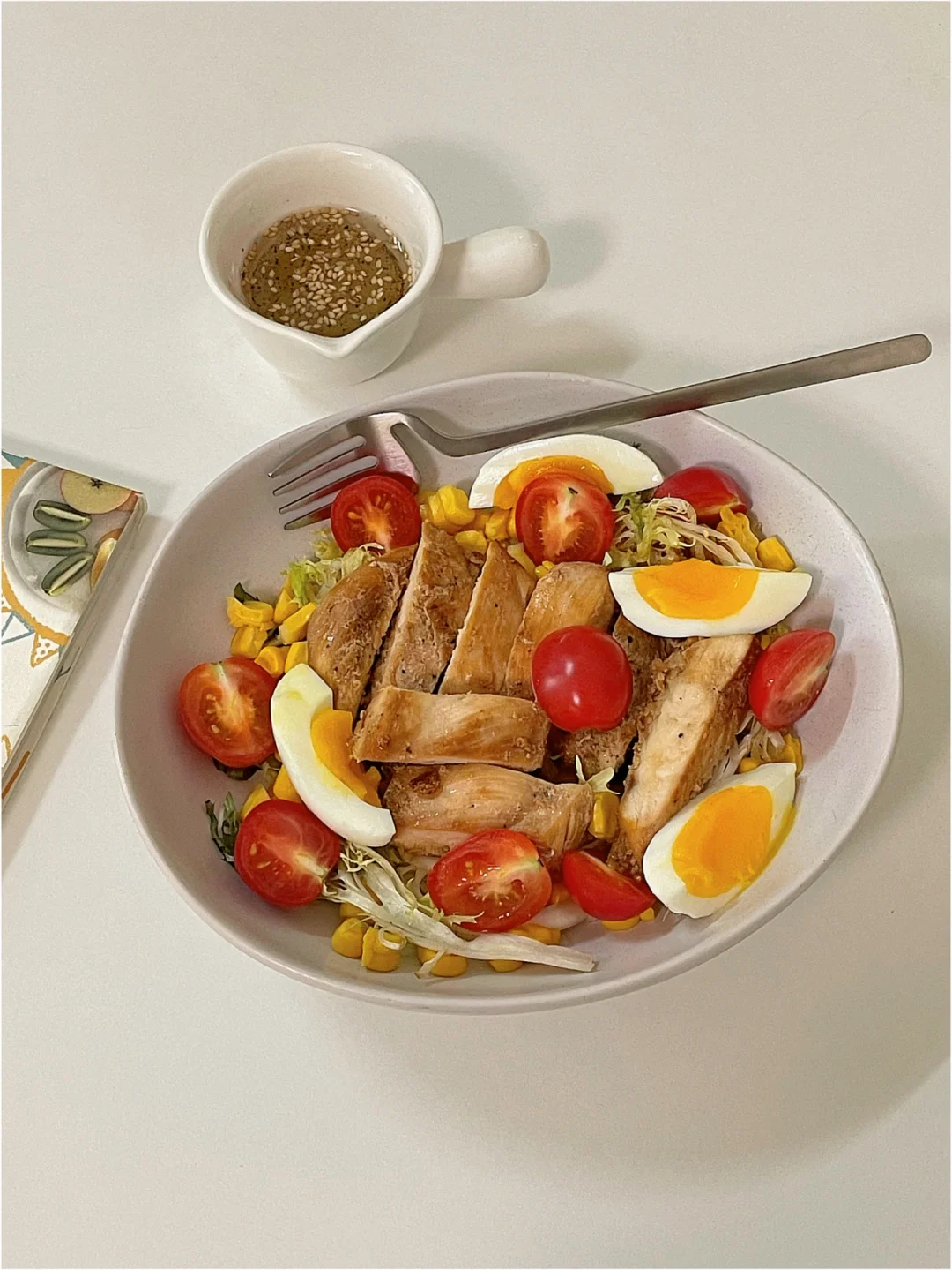玉米粒|苦苣|鸡胸肉|小番茄|水煮蛋