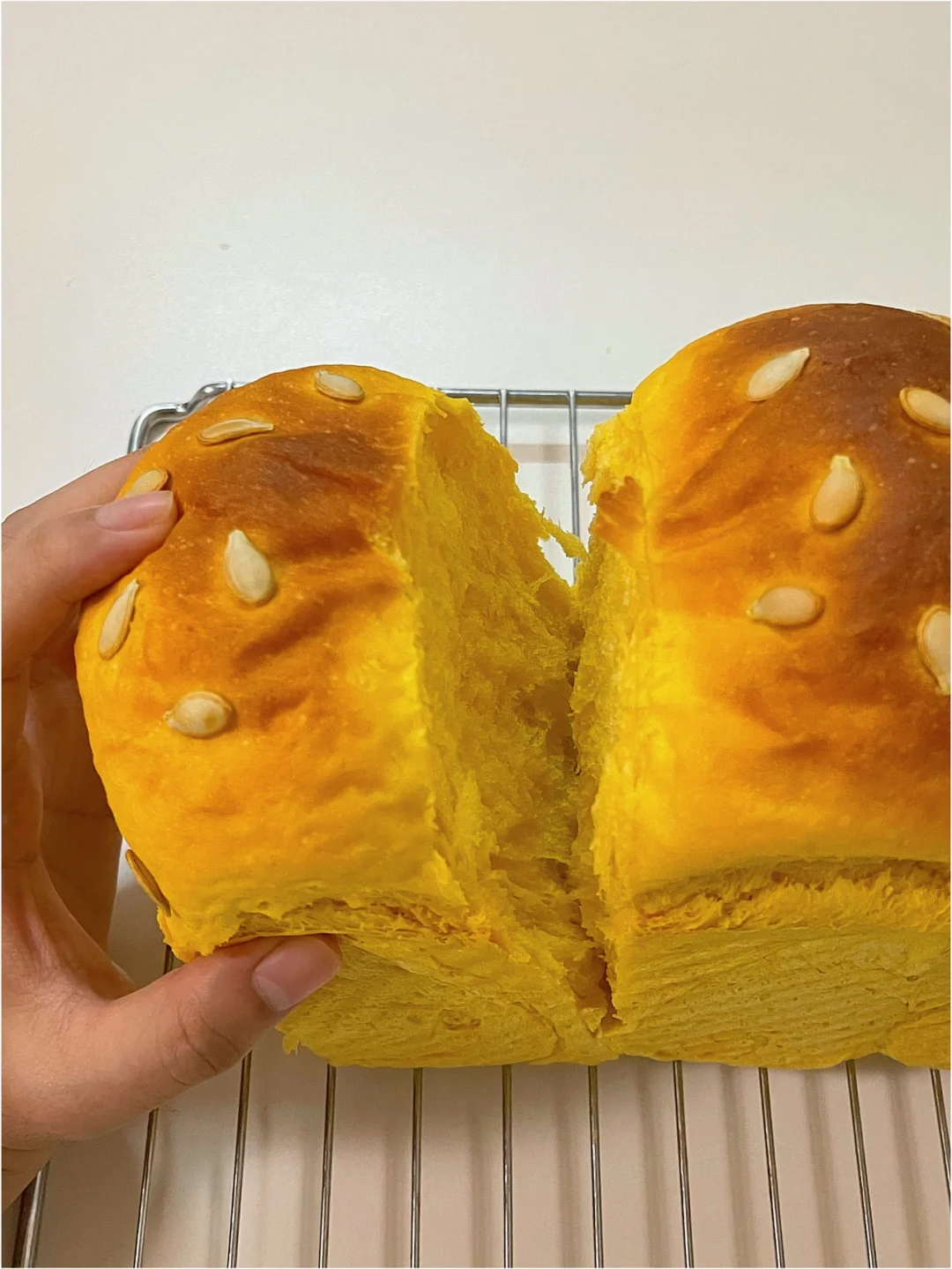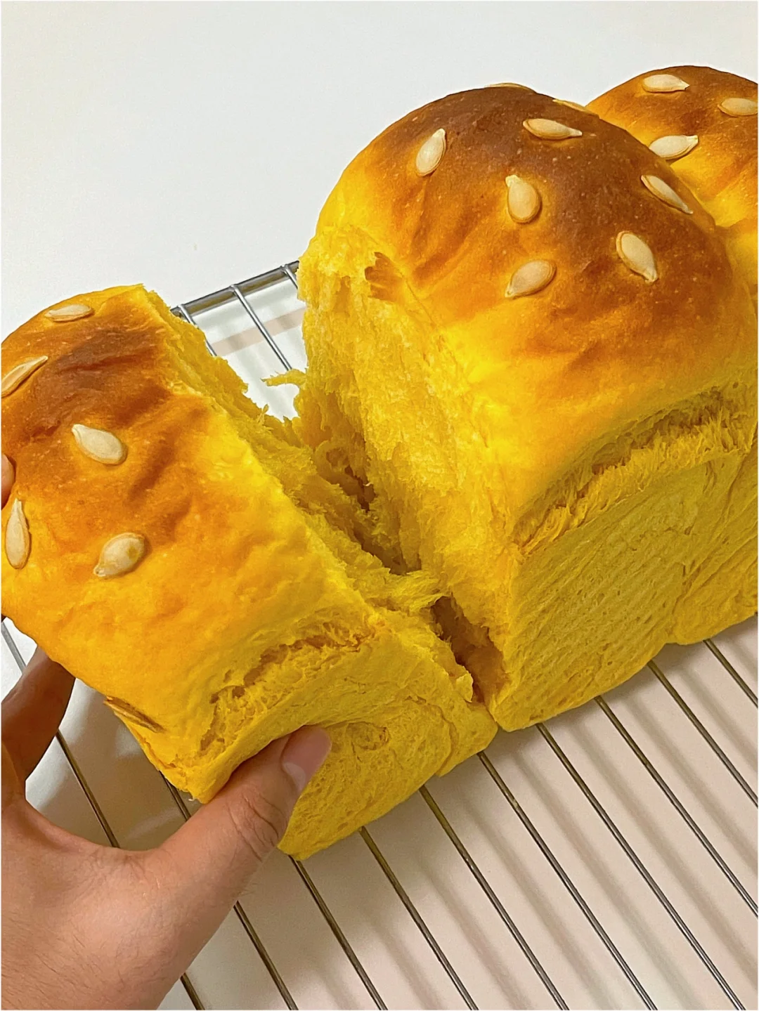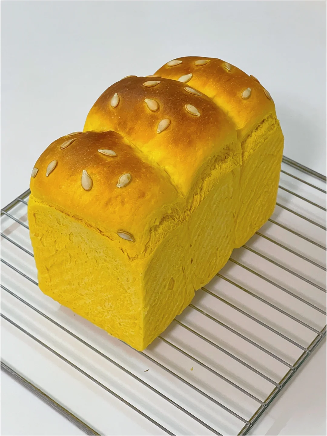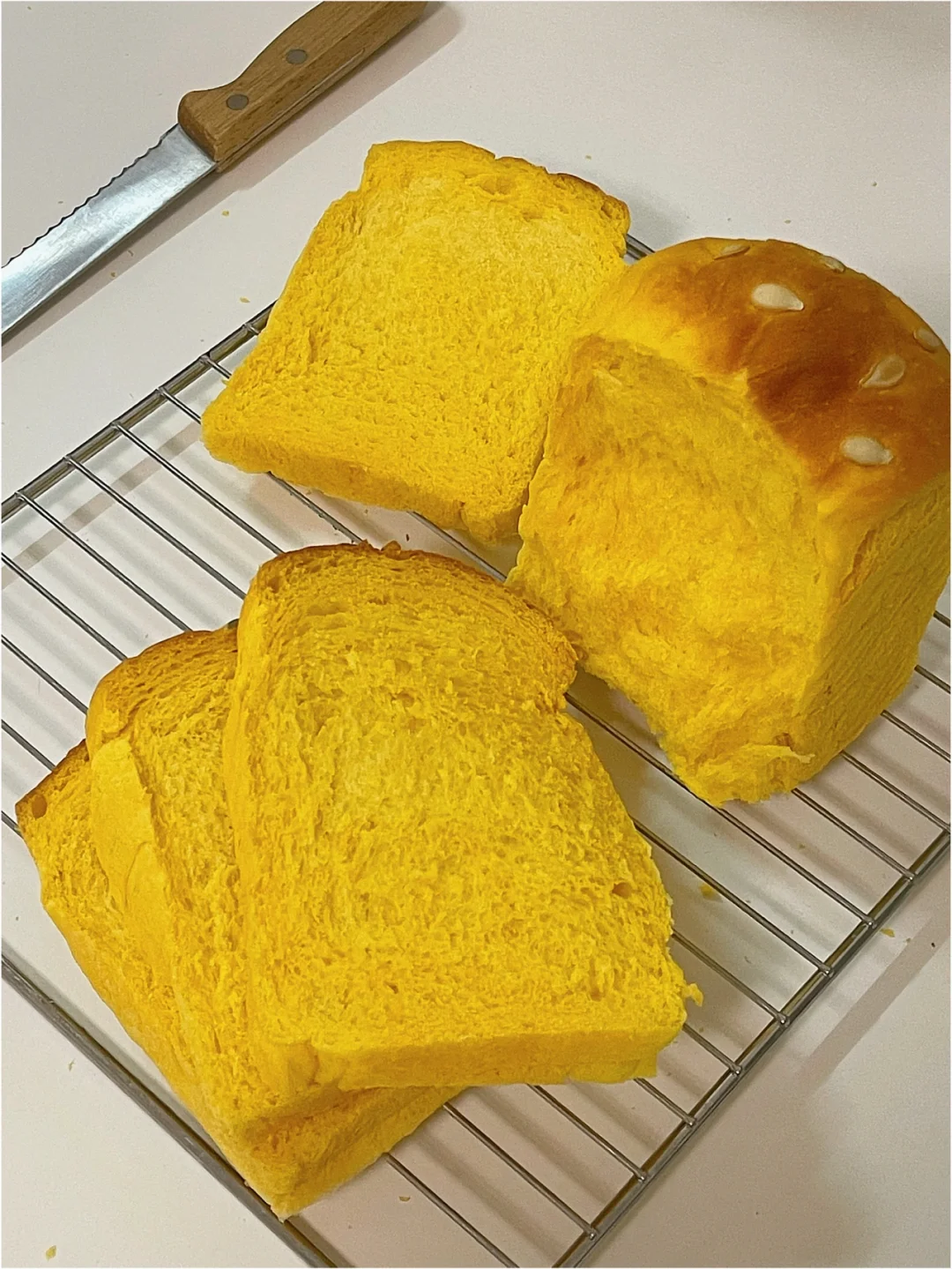 蒸了新鲜南瓜捣成泥做了一条吐司