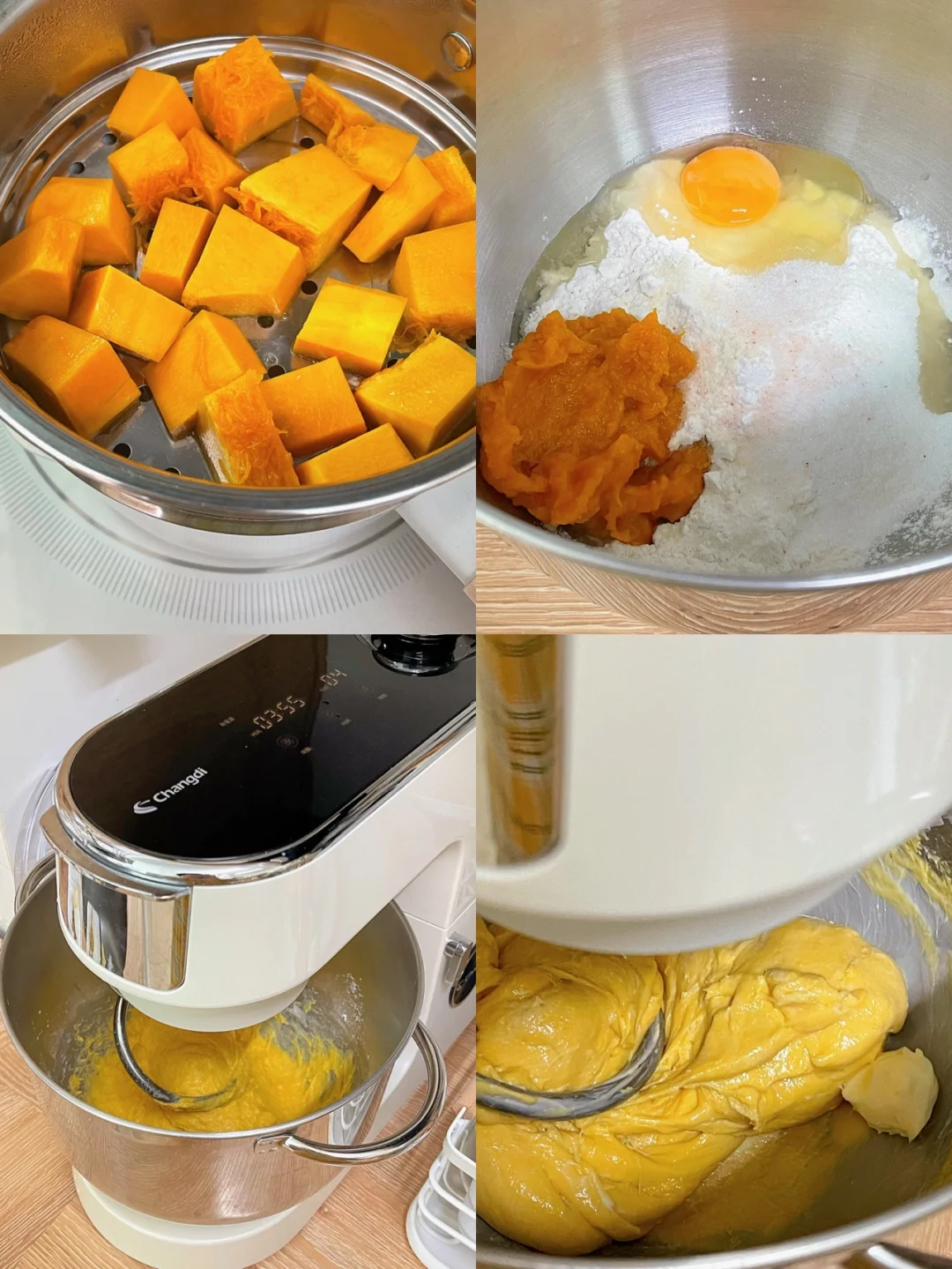 1️⃣100g 南瓜去皮切块上锅蒸熟,压成泥