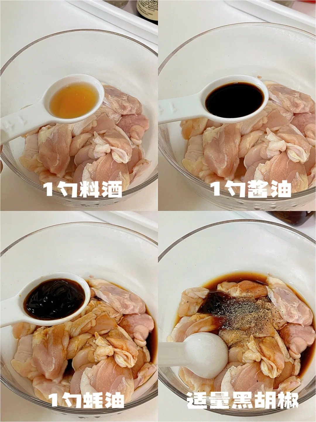 1勺料酒,1勺蚝油,1勺生抽,适量黑胡椒抓匀