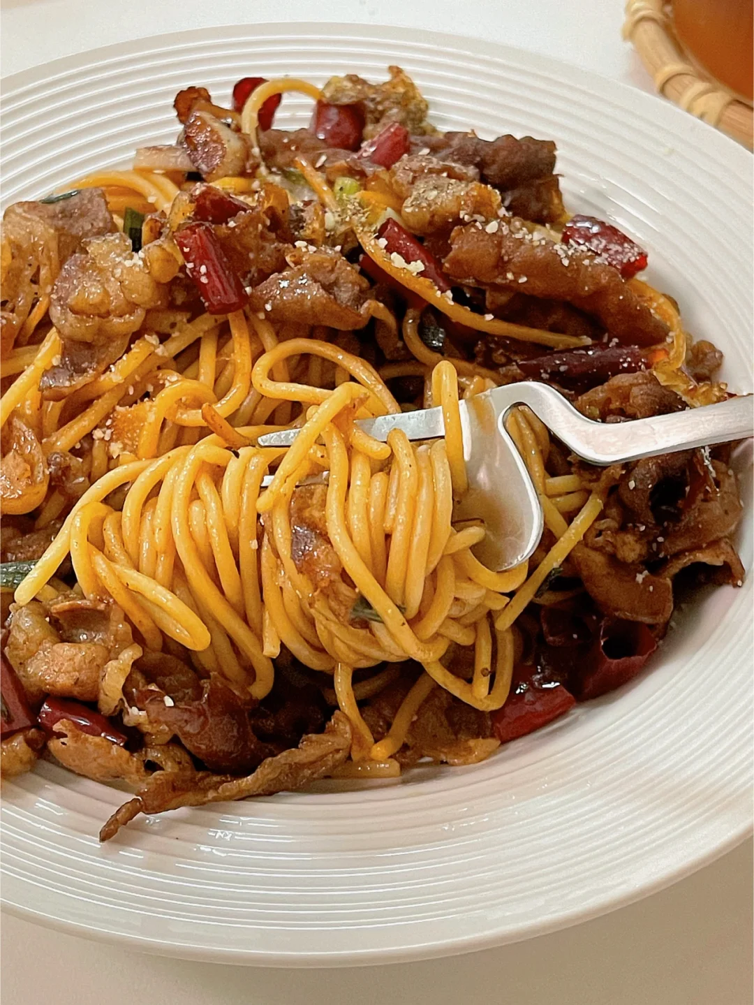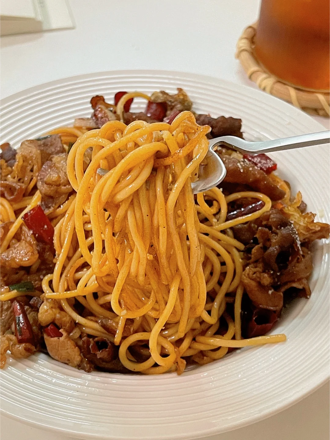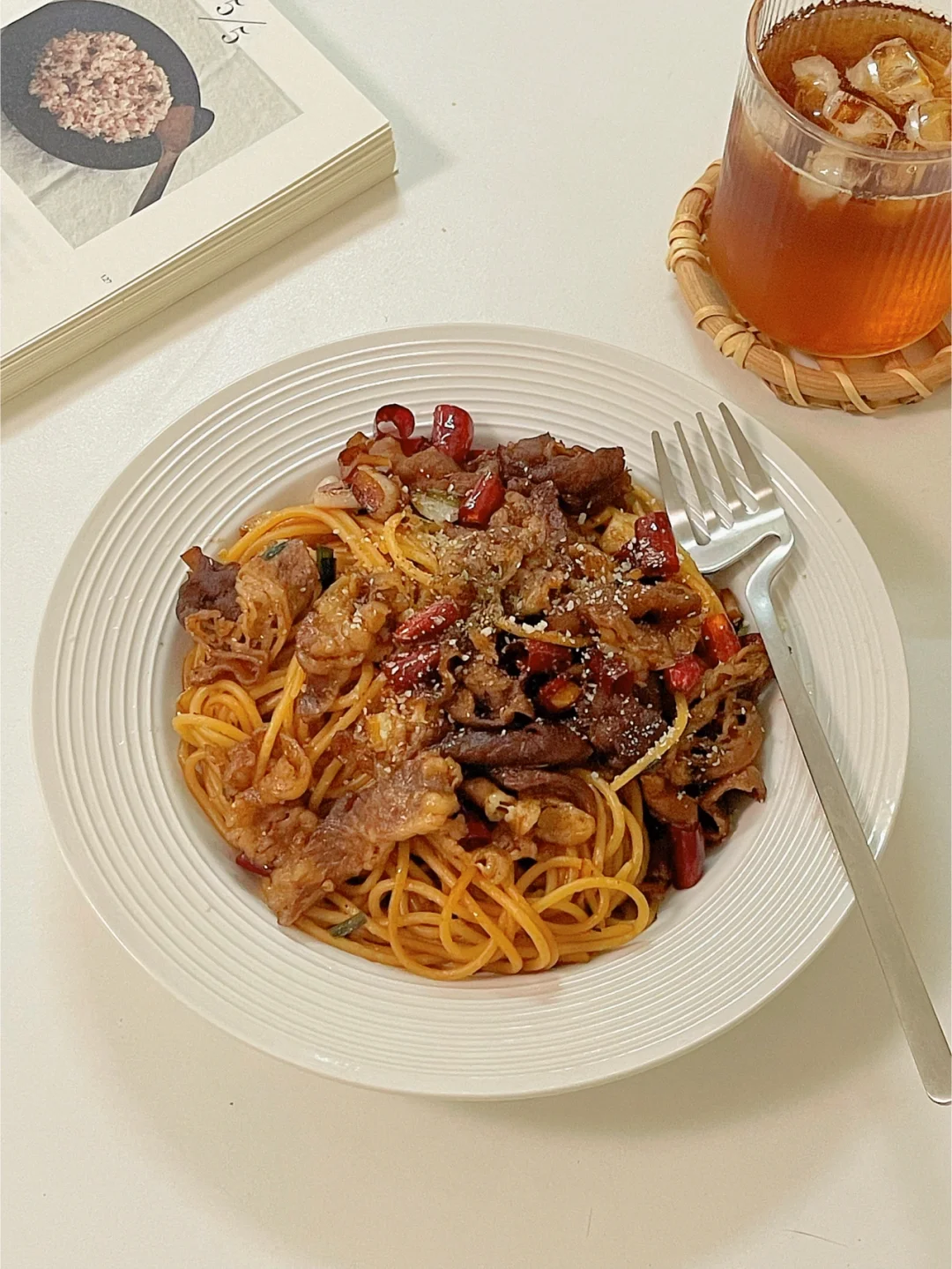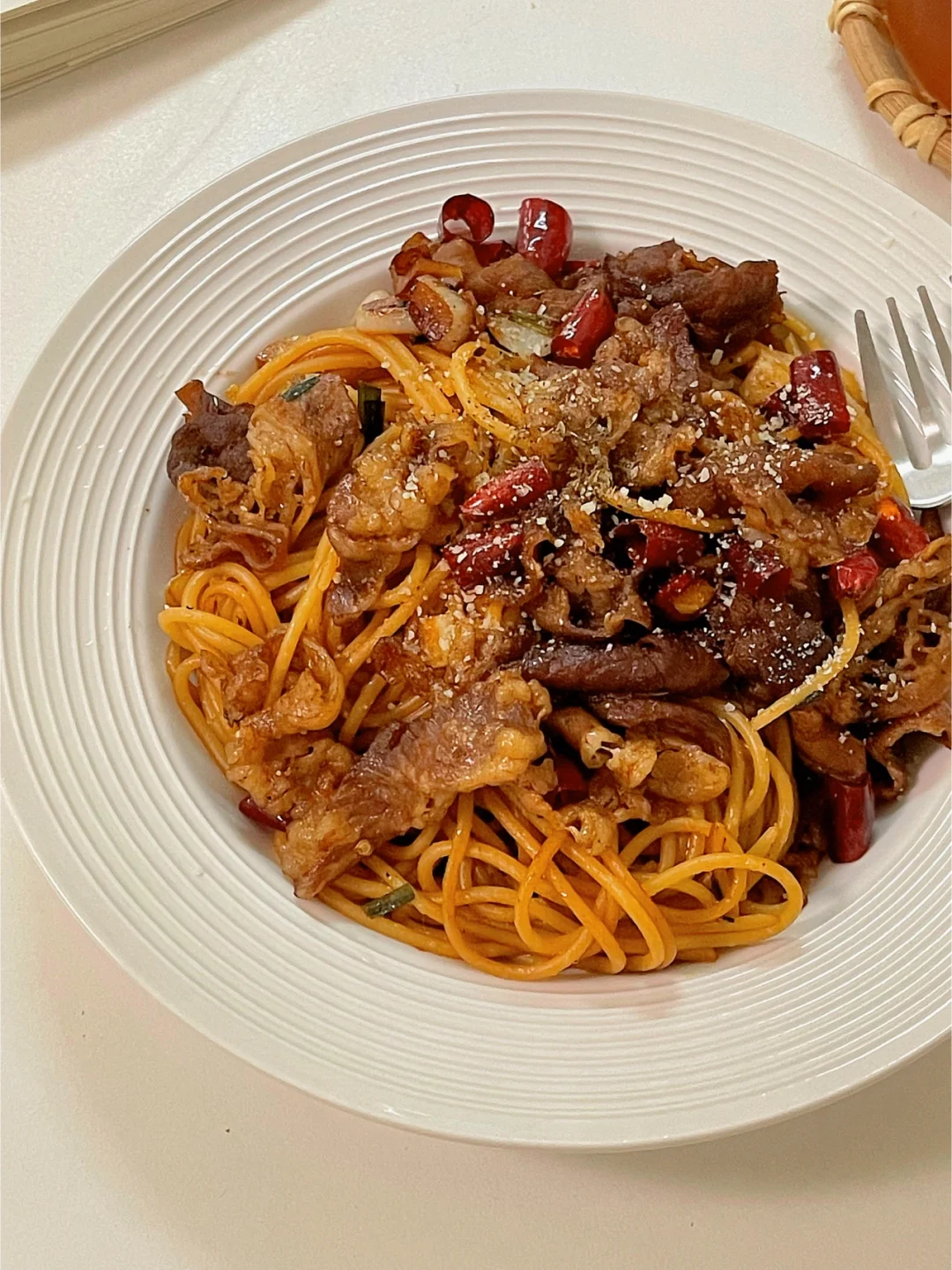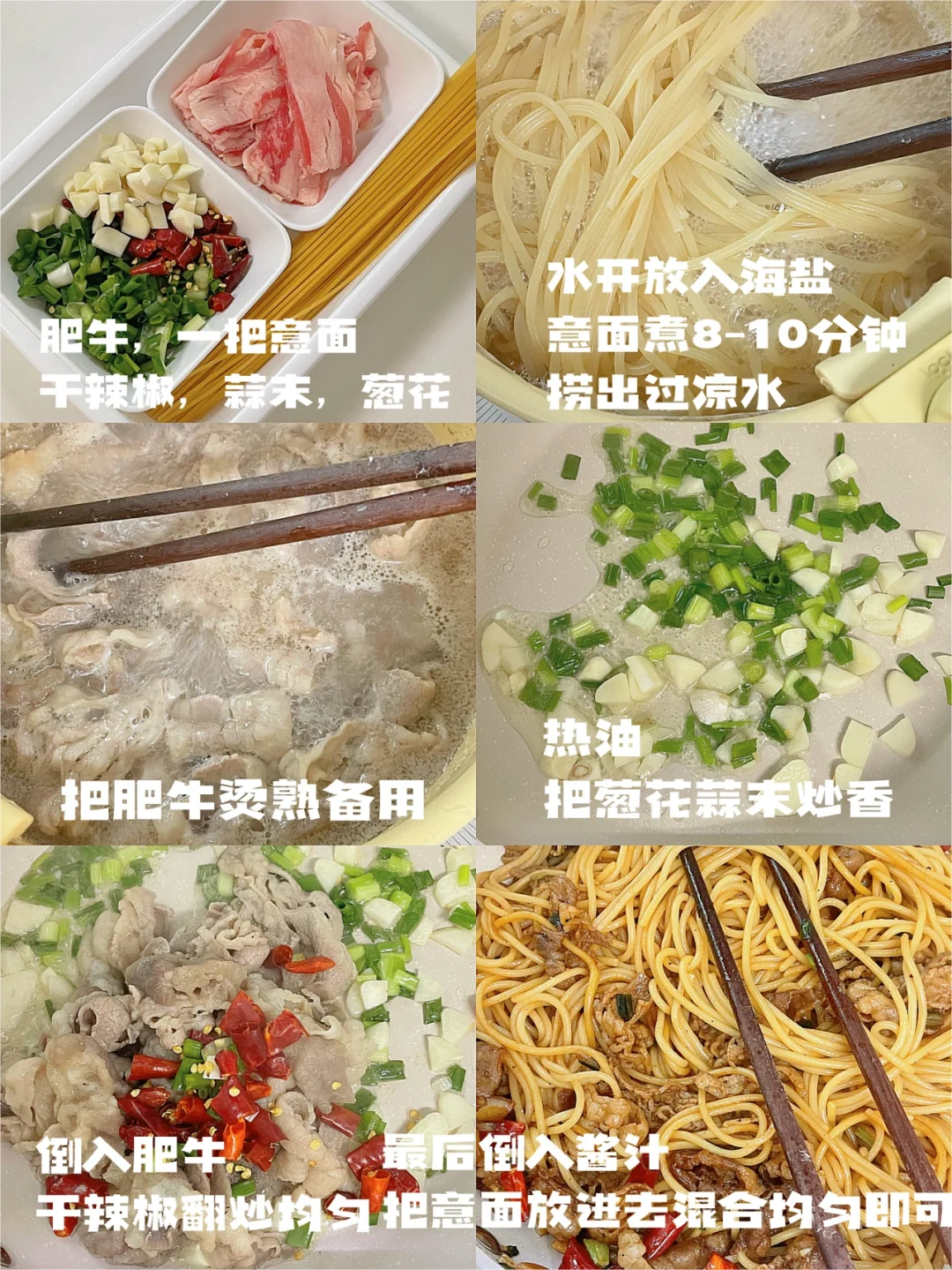 一把意面|葱花|肥牛肉|干辣椒|蒜末