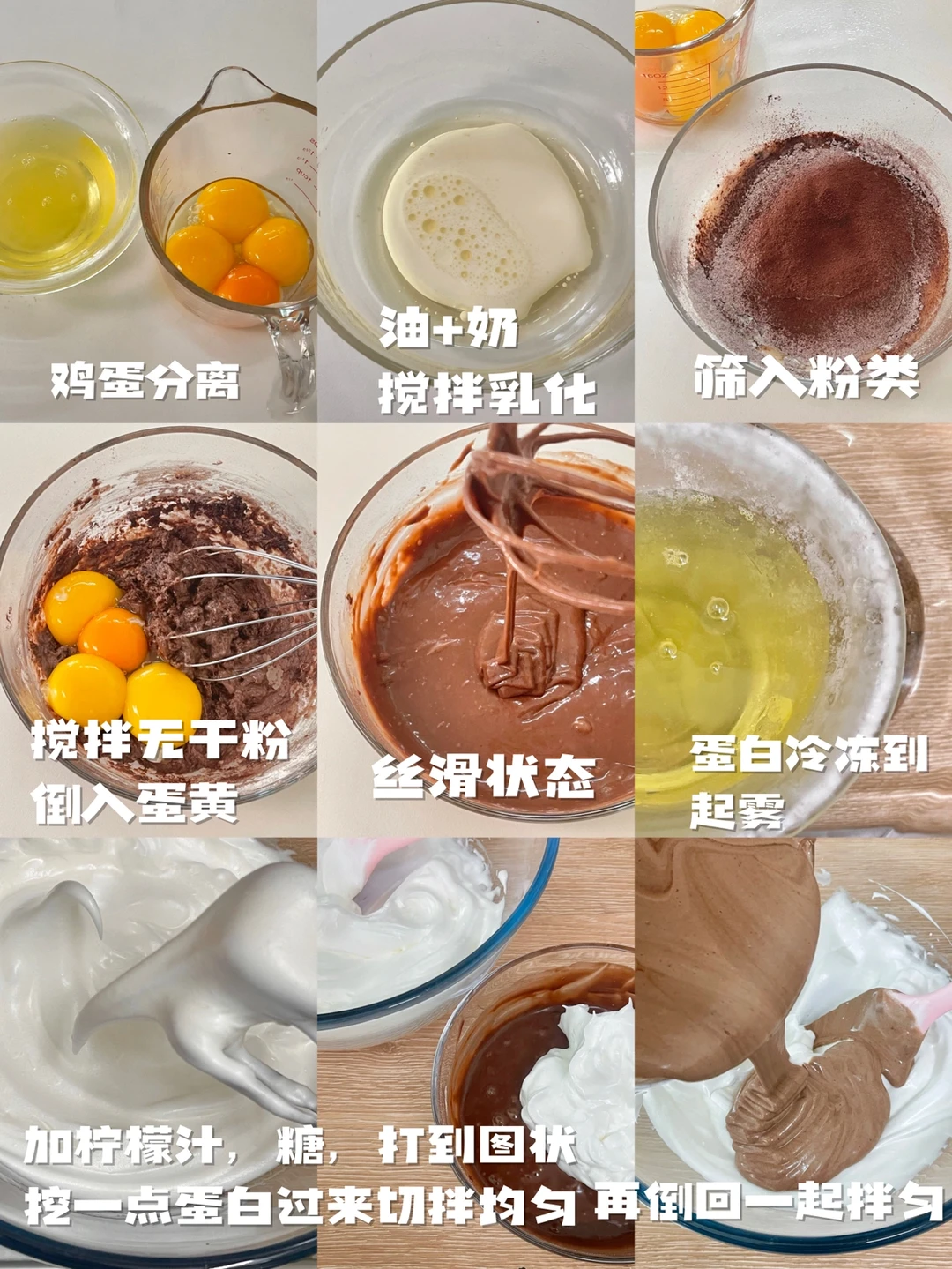 5️⃣把蛋白挖一部分给可可糊搅拌,再一起倒回来